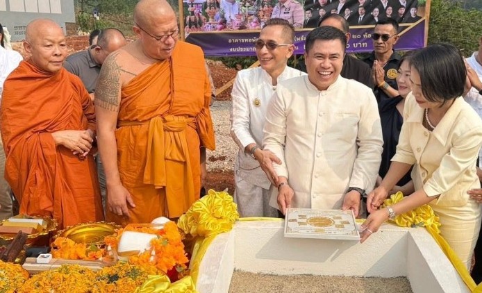 นายอำเภอทองผาภูมิวางศิลาฤกษ์ยกเสาเอกหอ พักนักศึกษาวิ...