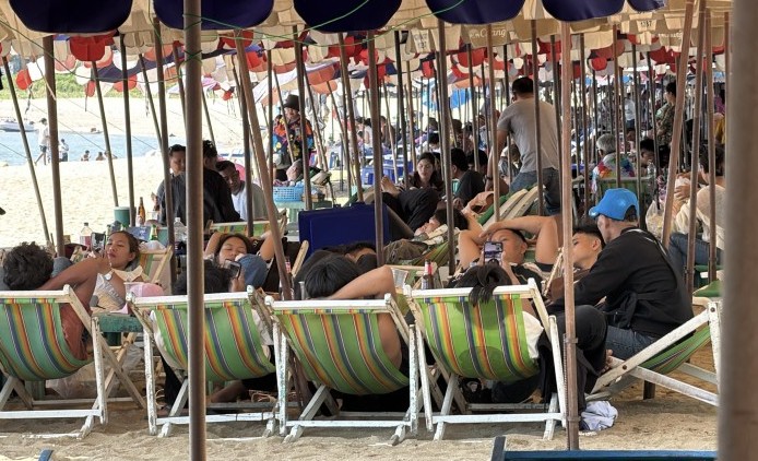 ชายหาดพัทยา คึกคัก นักท่องเที่ยวแห่นอนตากลม-เล่นน้ำทะเลคลายร...