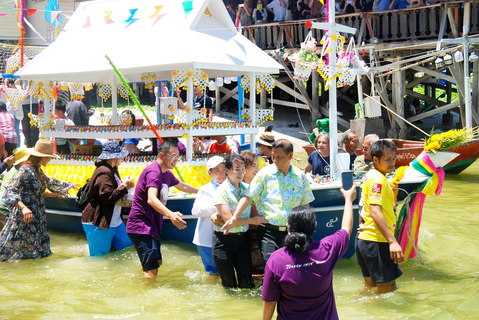 นายไพโรจน์ มากหมู่ ประธานชุมชนชาวประมงหัวหิน กล่าวว่าพิธีปล่อยเรือส่งเคราะห์ทางทะเลเป็นงานประเพณีเก่าแก่ของชาวหัวหินที่จัดขึ้นเป็นประจำทุกปีที่บริเวณศาลเจ้าแม่ทับทิมที่ประชาชนทั่วไปให้ความเคารพบูชา เพื่อทำบุญอุทิศส่วนกุศลให้กับบรรพบุรุษที่ล่วงลับไปแล้วและนำเถ้าอังคารมาลอยที่บริเวณชายทะเลหัวหิน แต่ไม่เคยได้กลับมาดูแลกราบไหว้ พร้อมทั้งทำบุญสะเดาะเคราะห์ ปล่อยตุ๊กตาปูนปั้นหุ่นหญิงชาย น้องจุก น้องแกละ ประมาณ 4,000 ตัวที่ทาสีสดให้ประชาชน แล้วแต่จิตศรัทธาบริจาคทำบุญเขียนชื่อตนเอง หรือญาติมิตรลงกระดาษติดกับตัวตุ๊กตา อธิษฐานขอให้สิ่งชั่วร้ายต่างๆ พ้นไปนำไปวางไว้ในวิมานเรือส่งเคราะห์ทางทะเล พร้อมใจกันลากเรือทั้งลำออกสู่ทะเลบริเวณหินโคร่งที่เป็นแหล่งปลาชุกชุม ก่อนปล่อยวิมานที่บรรจุตุ๊กตาปูนปั้นหุ่นหญิงชาย น้องจุก น้องแกละ ลงสู่ก้นทะเลกลายเป็นแหล่งปะการังหากินของสัตว์ทะเลต่อไป.