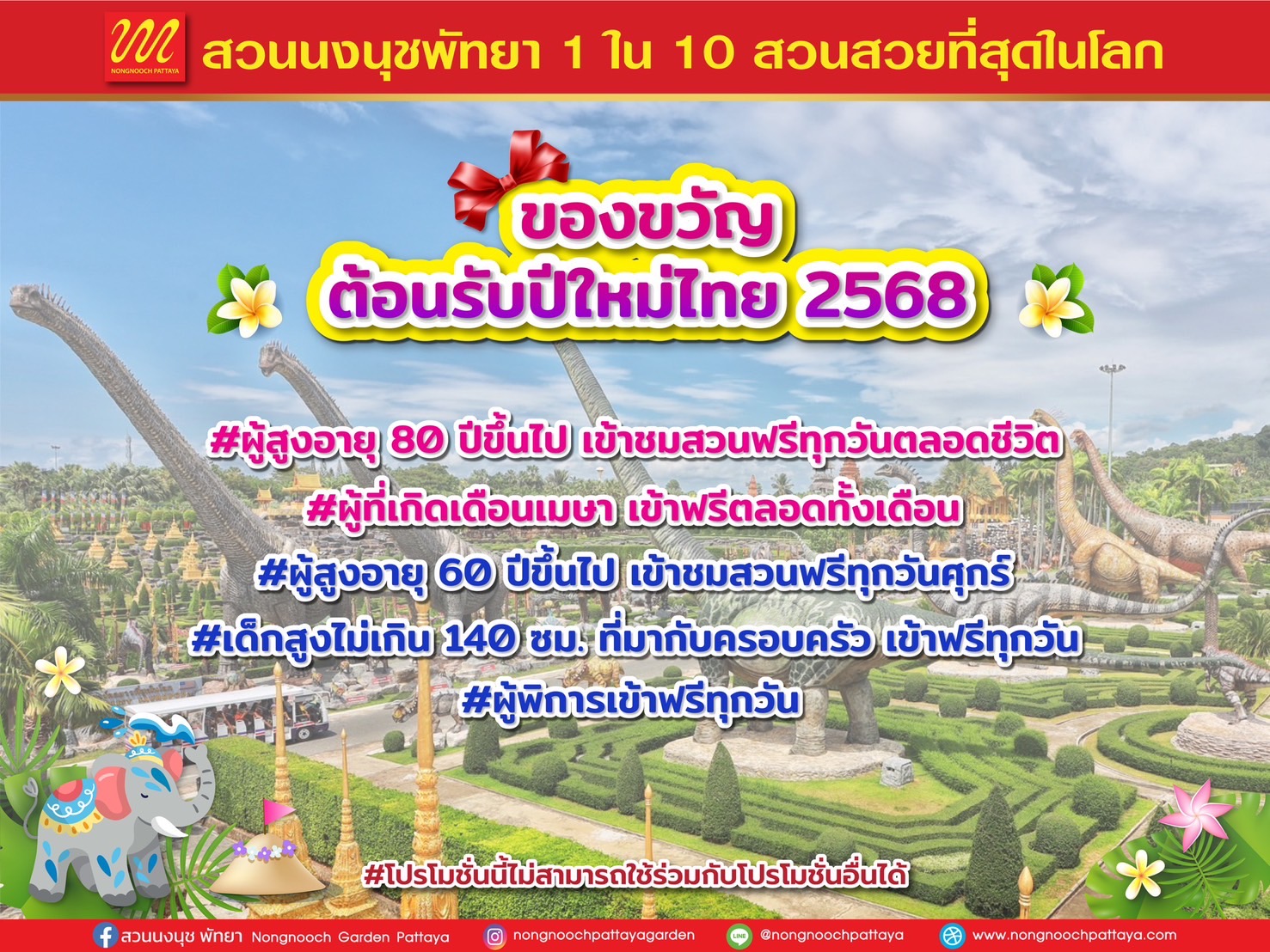 ผู้สื่อข่าวได้รับการเปิดเผยจาก นายกัมพล ตันสัจจา ประธานสวนนงนุชพัทยา แจ้งข่าวดีสำหรับนักท่องเที่ยวชาวไทย เข้าสวนนงนุชฟรีได้ทุกวันตลอดชีวิตกี่ครั้งก็ได้ เฉพาะผู้ที่มีอายุ 80 ปีขึ้นไป เริ่มตั้งแต่ เดือนเมษายน 2568 เป็นต้นไป เพื่อเป็นของขวัญให้พี่น้องคนไทยในช่วงเทศกาลปีใหม่
