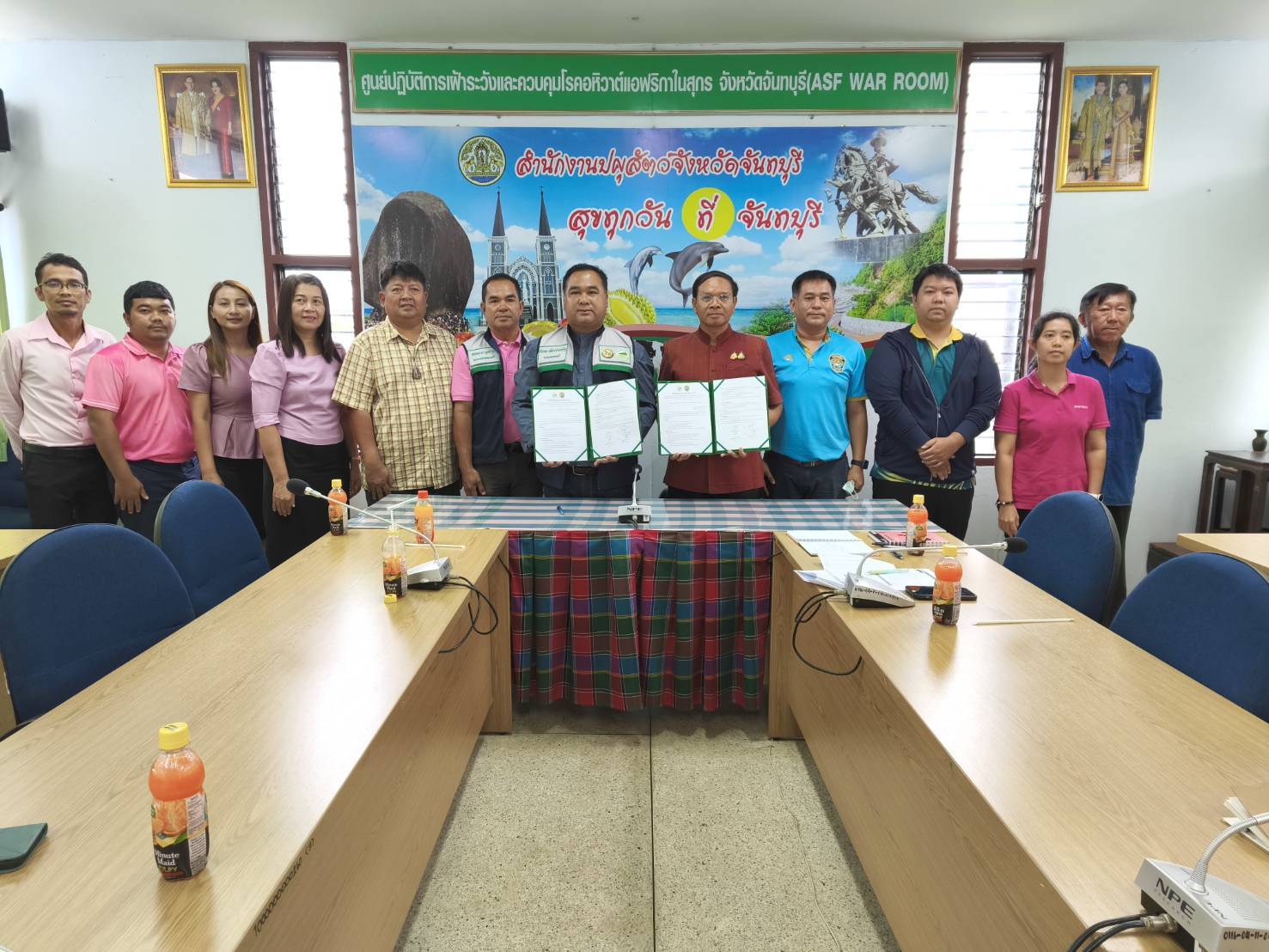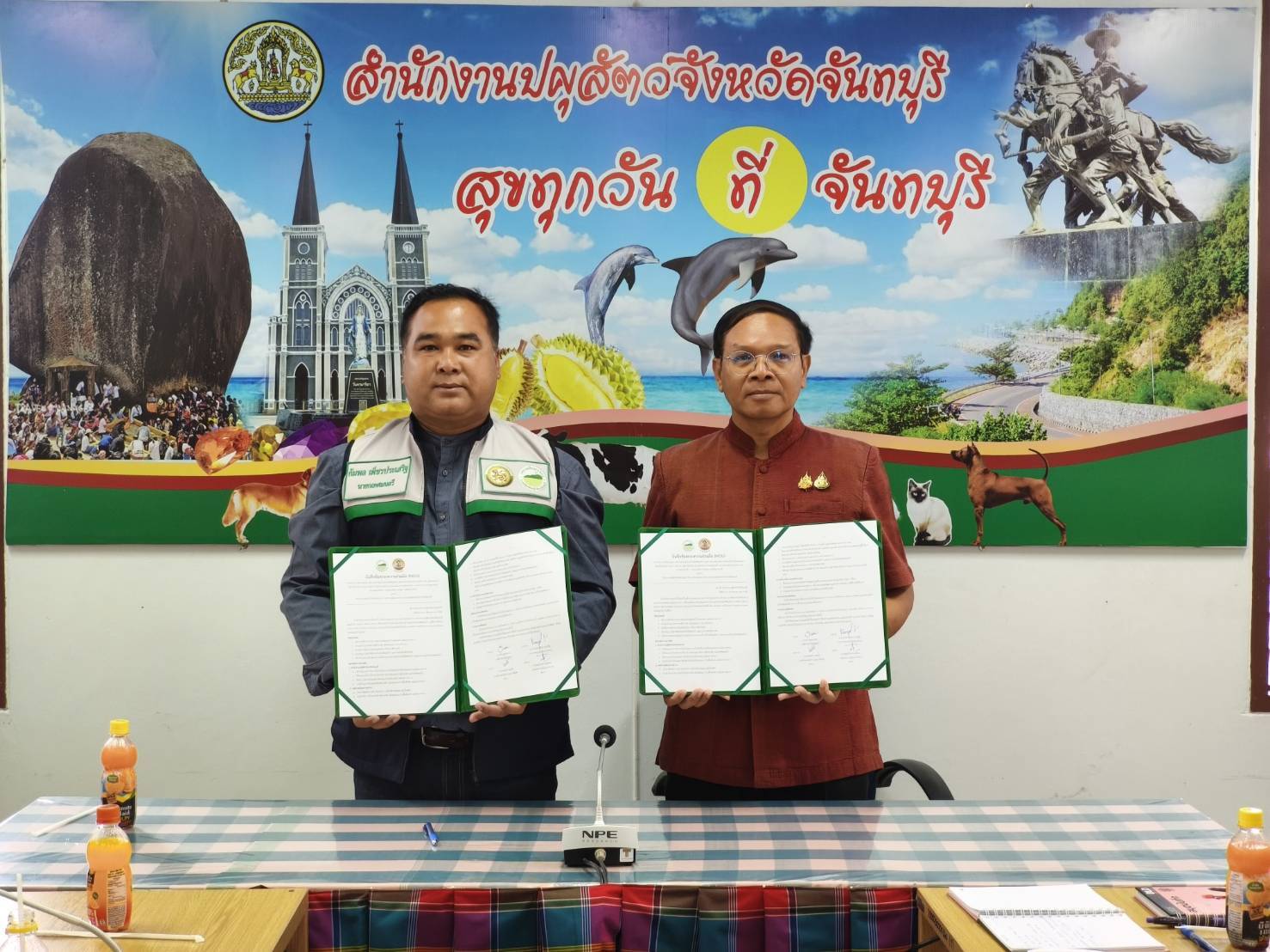 วันที่ 26 สิงหาคม 2568 เวลา 10.00 น. น.สพ.ธีร์ พูดเพราะ ปศุสัตว์จังหวัดจันทบุรี ลงนามบันทึกข้อตกลงความร่วมมือ(MOU) กับนายกัมพล เพ็ชรประเสริฐ นายกเทศมนตรีเมืองเกาะขวาง ณ ห้องประชุมโอบจันทน์ สำนักงานปศุสัตว์จังหวัดจันทบุรี ลงนามบันทึกข้อตกลงร่วมกันผนึกกำลังในการควบคุมประชากรสุนัขจรจัด ลดความเสี่ยงต่อโรคพิษสุนัขบ้า โดยเทศบาลจะรณรงค์ประชาสัมพันธ์ สร้างความเข้าใจแก่ประชาชน และผู้เลี้ยงสุนัขในชุมชนให้ช่วยเจ้าหน้าที่เทศบาลดักจับสุนัขจรจัด