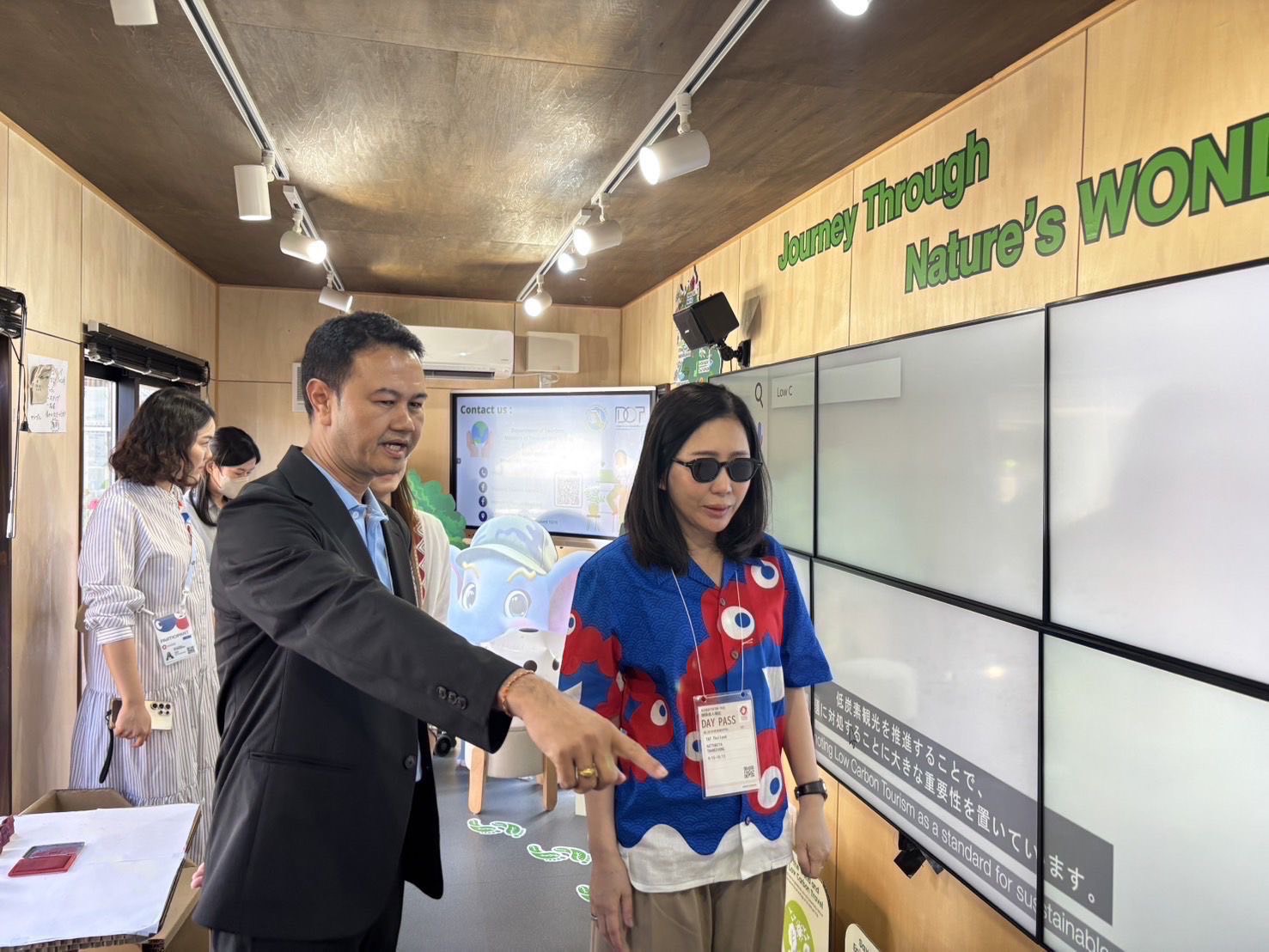 โดยมีนายจาตุรนต์ ภักดีวานิช อธิบดีกรมการท่องเที่ยว ให้การต้อนรับและนำชมบูธซึ่งจัดขึ้นภายใต้ธีม “Journey Through Nature’s Wonders” โชว์แนวคิด “Low Carbon Tourism” หรือการท่องเที่ยวคาร์บอนต่ำ เส้นทางท่องเที่ยวเชิงธรรมชาติ พร้อมกิจกรรมให้ผู้ร่วมงานได้สนุกและตระหนักถึงการอนุรักษ์สิ่งแวดล้อมภายใต้คอนเซปต์ “Save the world, enjoy low carbon travel”