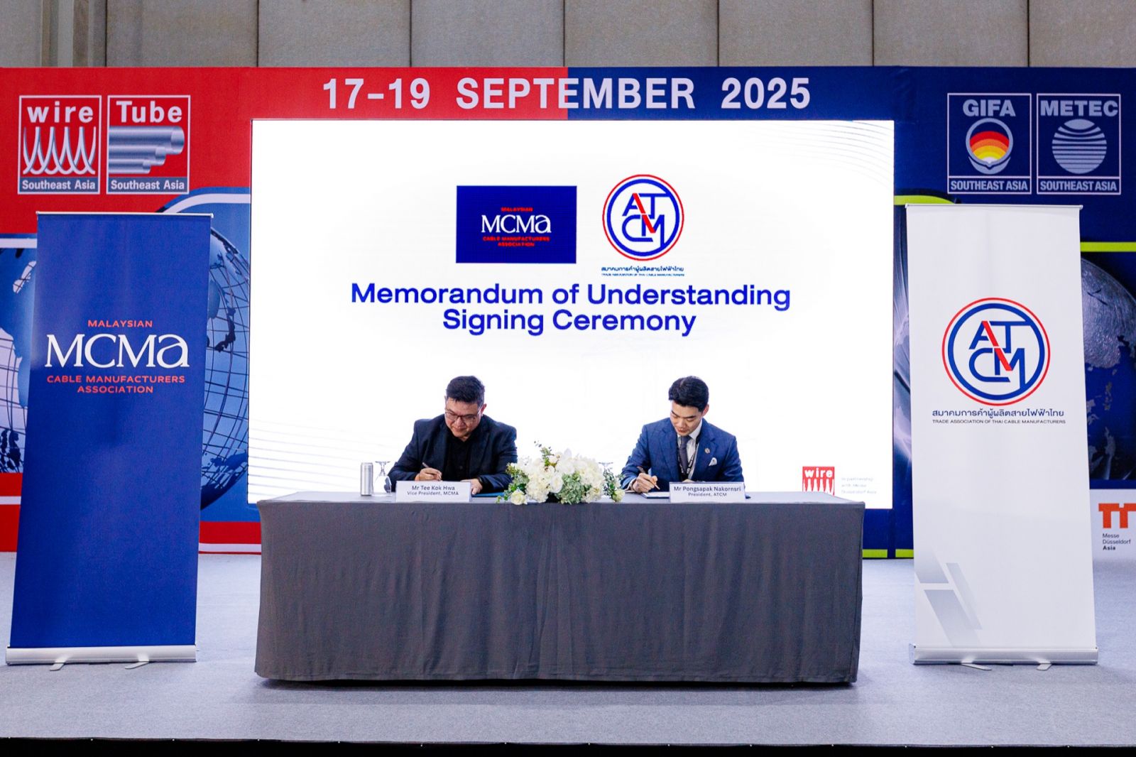 สมาคมการค้าผู้ผลิตสายไฟฟ้าไทย เดินหน้าสร้างความร่วมมือระดับภูมิภาค นำร่องเซ็น MOU ร่วมกับ สมาคมผู้ผลิตสายไฟฟ้ามาเลเซีย เดินหน้าความร่วมมือ 9 ด้าน ยกระดับมาตรฐานการผลิตและการติดตั้งสายไฟฟ้า เพิ่มความปลอดภัยต่อผู้ใช้งาน รองรับการเปลี่ยนผ่านด้านพลังงานและโครงสร้างพื้นฐานของภูมิภาคอาเซียน