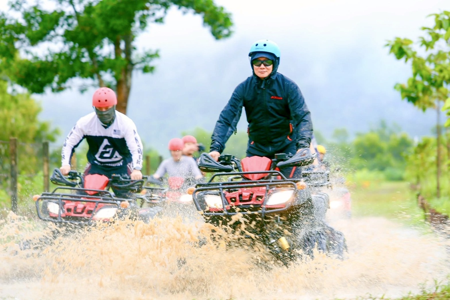 ไฮไลต์กิจกรรมไม่ธรรมดา พายคายัค กลางอ่างเก็บน้ำ ชมวิวภูเขาและน้ำตกหงาวแบบใกล้ชิด ยิงธนู วัดความแม่น แข่งกับเพื่อนเพิ่มสีสันความสนุก ขี่ ATV เส้นทางสุดท้าทาย ทั้งขึ้นเนิน ลุยน้ำ ตะลุยโคลนแบบจัดเต็มกว่า 40 นาที