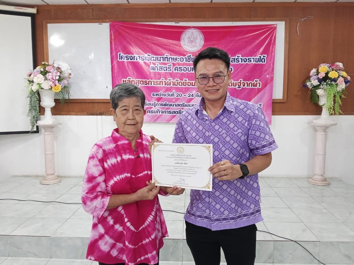 นายทยาน โคตะนนท์ ผู้อำนวยการศูนย์คุ้มครองและเสริมสร้างคุณภาพชีวิตจังหวัดสุพรรณบุรี พร้อมเจ้าหน้าที่ เข้าร่วมพิธีเปิดโครงการพัฒนาทักษะอาชีพ เพิ่มโอกาส สร้างรายได้แก่สตรีและครอบครัวเปราะบาง หลักสูตรการทำผ้ามัดย้อมและงานประดิษฐ์จากผ้า ระหว่างวันที่ 20 - 24 กันยายน 2568 ณ ที่ทำการพัฒนาบทบาทสตรีตำบลสนามชัย อำเภอเมืองสุพรรณ จังหวัดสุพรรณบุรี จัดโดยศูนย์การเรียนรู้พัฒนาสตรีและครอบครัวภาคกลาง จังหวัดนนทบุรี