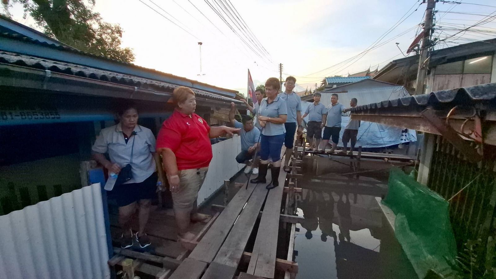 โดยเฉพาะชุมชนหน้าวัดบางหลวงนั้นชาวบ้านกว่า 150 หลังคาเรือน ต้องได้รับความเดือดร้อนหลังจากนั้นทางเทศบาลตำบลบางหลวง นำโดย น.ส.สุกาญญา ดีสวัสดิ์ (นายกเจี๊ยบ) นายกเทศมนตรีตำบลบางหลวง พร้อมทีมงานได้ลงตรวจสอบและให้กำลังใจกับชาวบ้านพร้อมกับได้มีการสร้างสะพานทางเดินให้กับชุมชนหน้าวัดบางหลวงเป็นระยะทางร่วม 300 เมตร สำหรับชุมชนบ้านคลองบางโพธิ์ใต้ ซึ่งมีบ้านเรือนกว่า 20 หลังคาเรือนนั้นชาวบ้านต่างต้องการเรือ หรือโฟมในการสัญจรเข้าออกซึ่งทางเทศบาลนั้นก็จะได้ดำเนินการจัดหาเพื่อมาบรรเทาทุกข์ให้กับชาวบ้านต่อไป