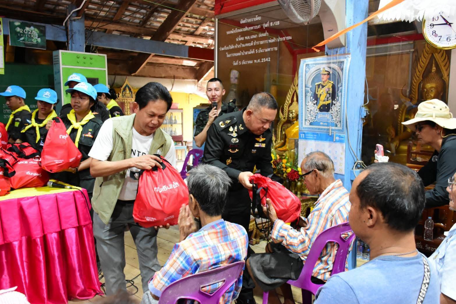 จากนั้นที่ศาลาการเปรียญวัดบางแก้ว เป็นการมอบถุงยังชีพให้กับพี่น้องประชาชนที่ได้รับผลกระทบจากเหตุอุทกภัย จำนวนกว่า 300 ชุด และได้ร่วมพูดคุยเพื่อสร้างกำลังใจกับผู้มาให้การต้อนรับอย่างเป็นกันเอง ทั้งนี้ชุดแพทย์เครื่องที่โรงพยาบาลค่ายสมเด็จพระนเรศวรมหาราช ได้ออกหน่วยบริการด้านสุขภาพให้กับประชาชน พร้อมกันนี้ คณะผู้บัญชาการมณฑลทหารบกที่ 39 และคณธผู้บริหารกลุ่มเซนทรัล ลงพื้นที่โดยใช้เรือท้องแบนกองทัพบก จำนวน 3 ลำ นำถุงยังชีพและสิ่งของบริจาค มอบให้กับครอบครัวผู้ประสบภัย จำนวน 5 หลังคาเรือน และได้พูดคุยรับฟังปัญหาของประชาชนที่รอการแก้ไข เพื่อเป็นการสร้างขวัญกำลังใจให้กับพี่น้องประชาชนให้ผ่านพ้นวิกฤตอันนี้ไปด้วยกัน และยังได้ให้คำมั่นสัญญาว่ากองทัพบกจะไม่ทอดทิ้งประชาชน เพราะ “ทหารเป็นที่พึ่งของประชาชนในทุกโอกาส”