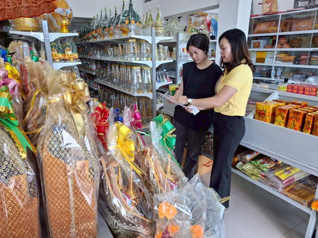 เมื่อเวลา 16.00 น วันที่ 6 ตุลาคม 2568 นางสาวสุพรรษา เลิศสัมพันธ์สุข หัวหน้ากลุ่มกำกับและพัฒนาเศรษฐกิจการค้า สำนักงานพาณิชย์จังหวัดพิษณุโลก พร้อมเจ้าหน้าที่ ลงพื้นที่ตรวจติดตามสถานการณ์การจำหน่ายชุดสังฆทาน ชุดไทยธรรม และชุดเครื่องกฐิน ในช่วงวันสำคัญทางพุทธศาสนาวันออกพรรษาและประเพณีการทอดกฐิน
