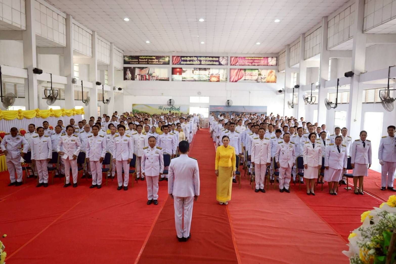 อำเภอหนองกุงศรี จัดพิธีสวดพระพุทธมนต์และทำบุญตักบาตรถวายพระราชกุศล และประกอบพิธีวางพวงมาลาถวายสักการะ เนื่องในวันนวมินทรมหาราช