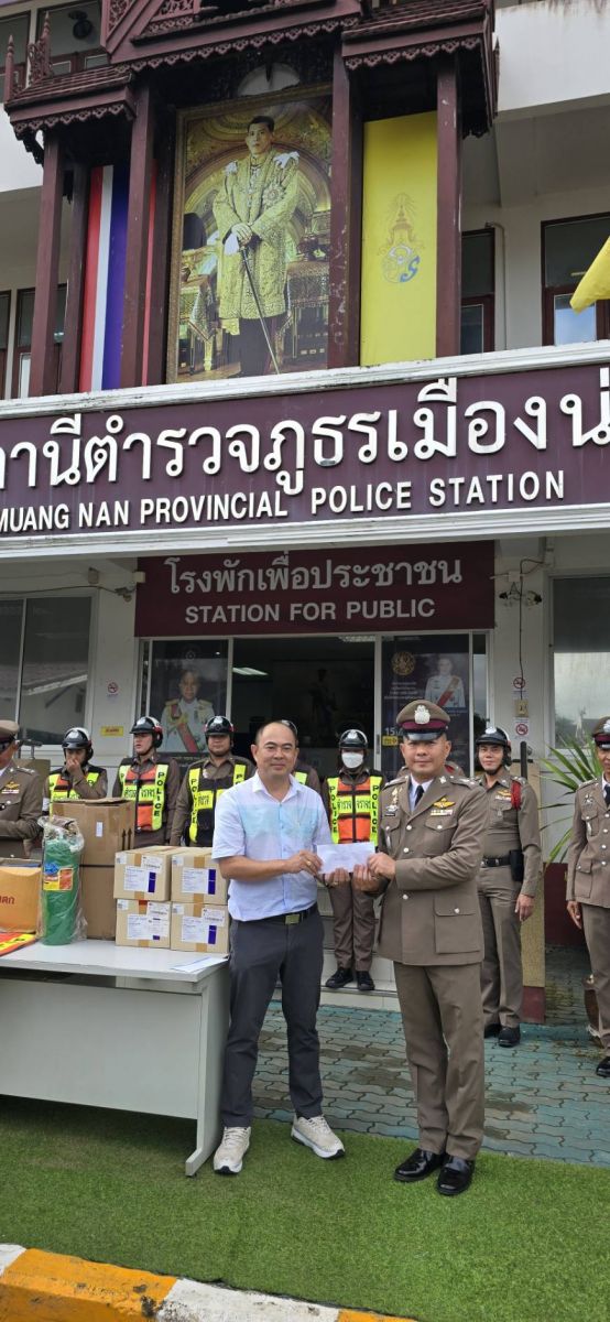ในการนี้ได้รับเกียรติจาก พ.ต.อ.ชาญณรงค์ รัชตประทาน ผู้กำกับการสถานีตำรวจภูธรเมืองน่าน และ พ.ต.ท.ทศพล สืบกาสี รองผู้กำกับการจราจร สถานีตำรวจภูธรเมืองน่าน พร้อมด้วยข้าราชการตำรวจ ร่วมเป็นผู้รับมอบและแสดงความขอบคุณต่อการสนับสนุนอันมีคุณค่าจากภาคเอกชนในครั้งนี้