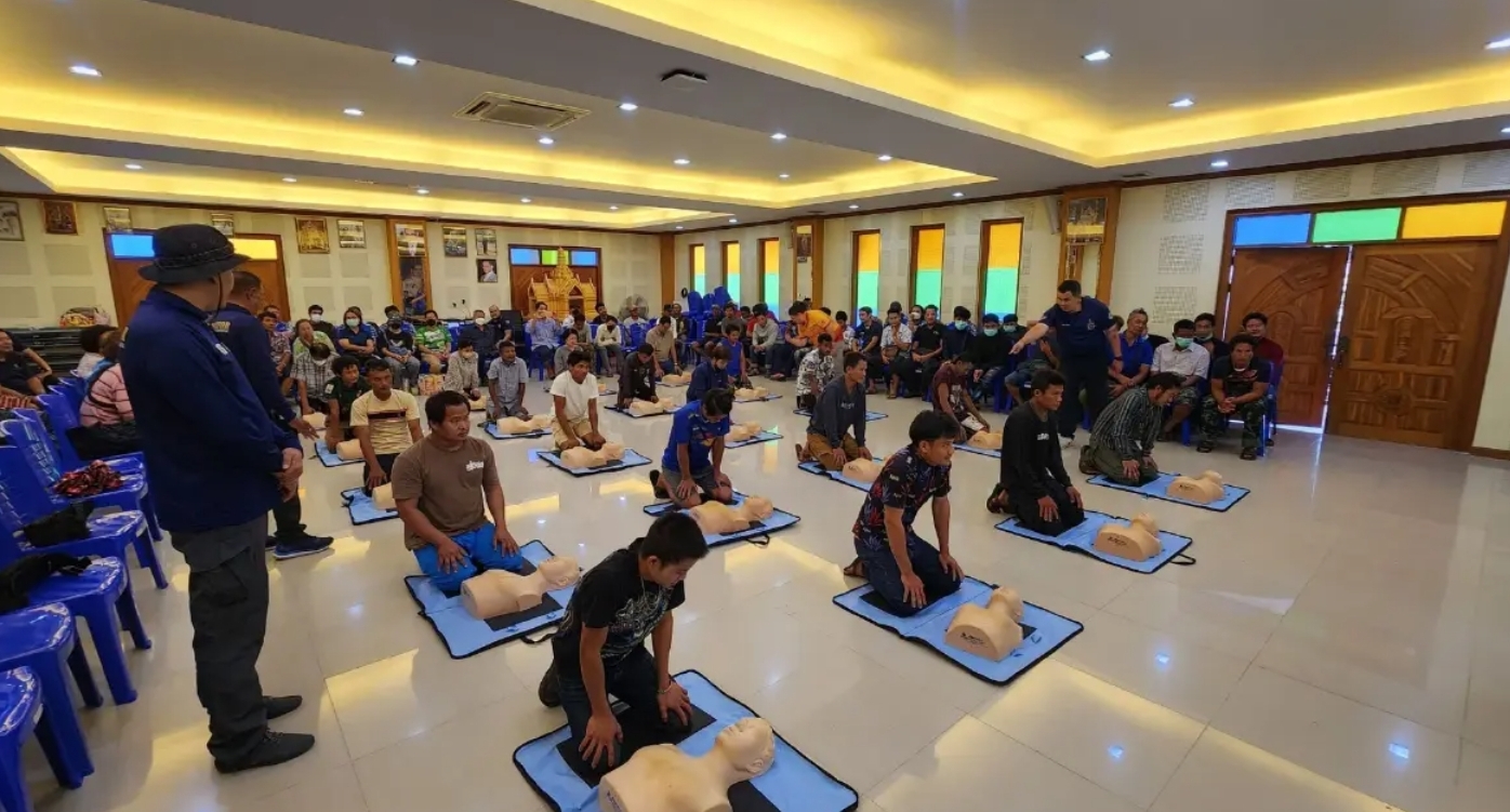 โดยมีเนื้อหาครอบคลุมทั้งภาคทฤษฎีและภาคปฏิบัติ เช่น การช่วยฟื้นคืนชีพ (CPR) การช่วยเหลือผู้ประสบอุบัติเหตุตกน้ำ การปฐมพยาบาลผู้บาดเจ็บ และการดับเพลิงเบื้องต้น เพื่อให้ลูกเรือประมงสามารถนำทักษะเหล่านี้ไปใช้ได้จริงเมื่อเกิดเหตุฉุกเฉินทั้งในเรื่องของการประเมินอาการผู้บาดเจ็บและการให้การช่วยเหลืออย่างถูกต้องปลอดภัย อันจะช่วยเพิ่มโอกาสรอดชีวิตของผู้ประสบเหตุ โครงการนี้นับเป็นอีกก้าวสำคัญในการยกระดับมาตรฐานแรงงานประมงให้สอดคล้องกับกฎหมายและข้อกำหนดสากล เสริมสร้างภาพลักษณ์ที่ดีต่อภาคประมงไทยด้านการดูแลแรงงานไทยและแรงงานต่างด้าวในเวทีโลก