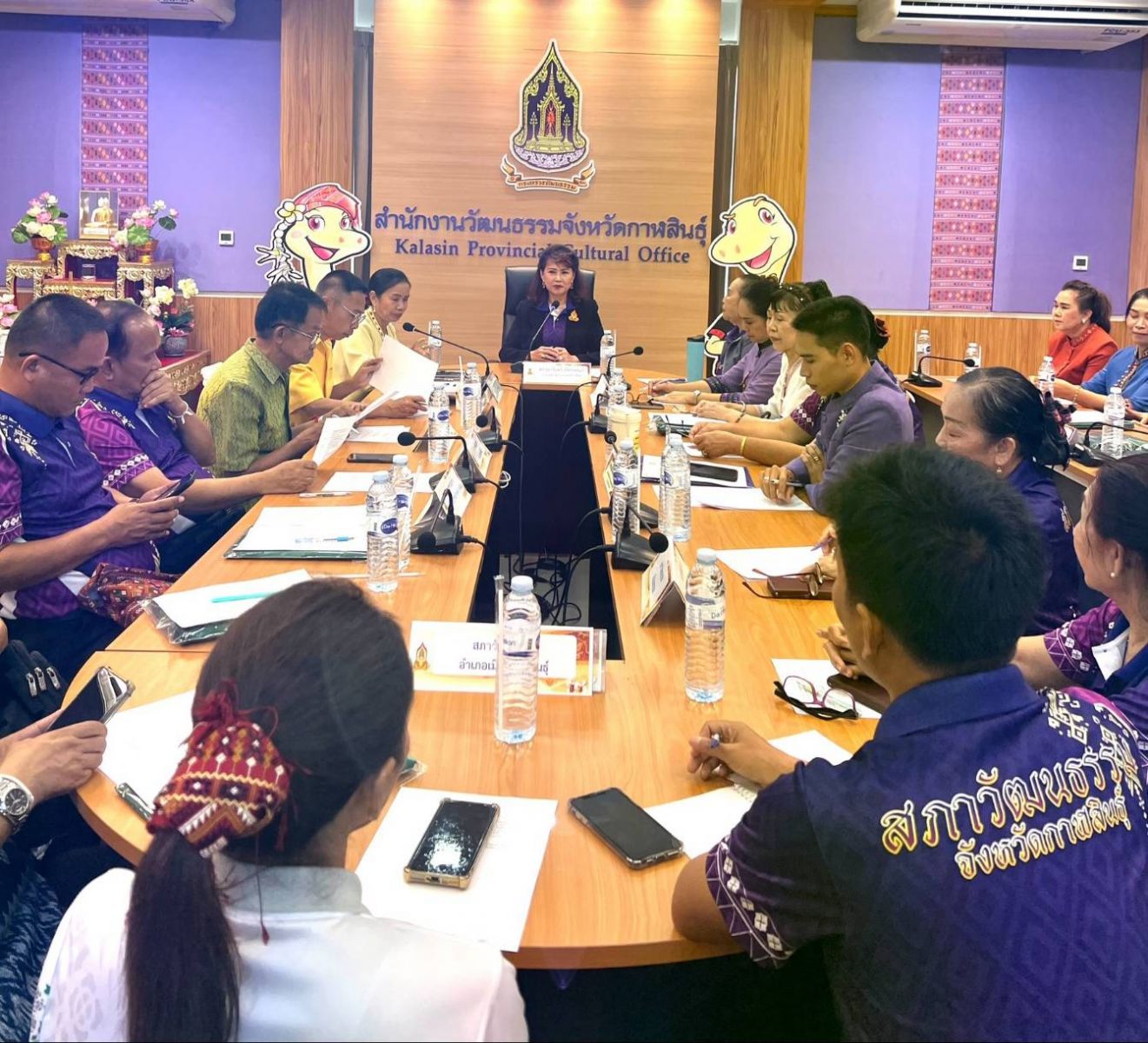 วันที่ 16 ต.ค.2568 ที่ห้องประชุมสํานักงานวัฒนธรรมจังหวัดกาฬสินธุ์ ดร.อุมารินทร์ เลิศสหพันธ์ ประธานสภาวัฒนธรรมจังหวัดกาฬสินธุ์ นางนภสร พระยาลอ วัฒนธรรมจังหวัดกาฬสินธุ์ พร้อมด้วย คณะกรรมการสภาวัฒนธรรมจังหวัดกาฬสินธุ์และประธานสภาวัฒนธรรม อำเภอ ได้ร่วมประชุม เพื่อปรึกษาหารือ ในการกำหนดโครงการประชุมเสวนาสภาวัฒนธรรมสัญจร ภาคตะวันออกเฉียงเหนือ และสืบสานสายใยวัฒนธรรมผู้ไทนานาชาติ ครั้งที่15/2568