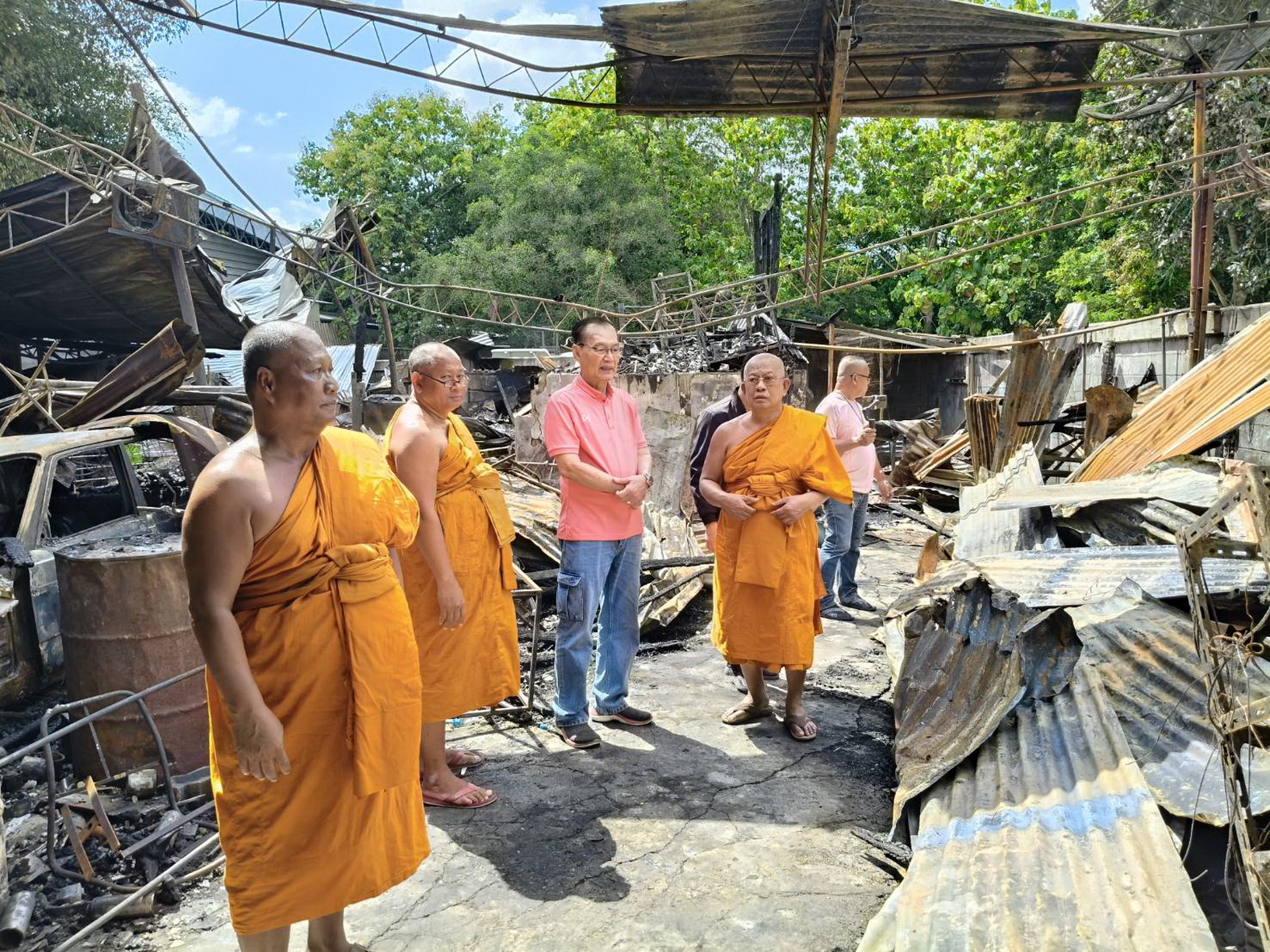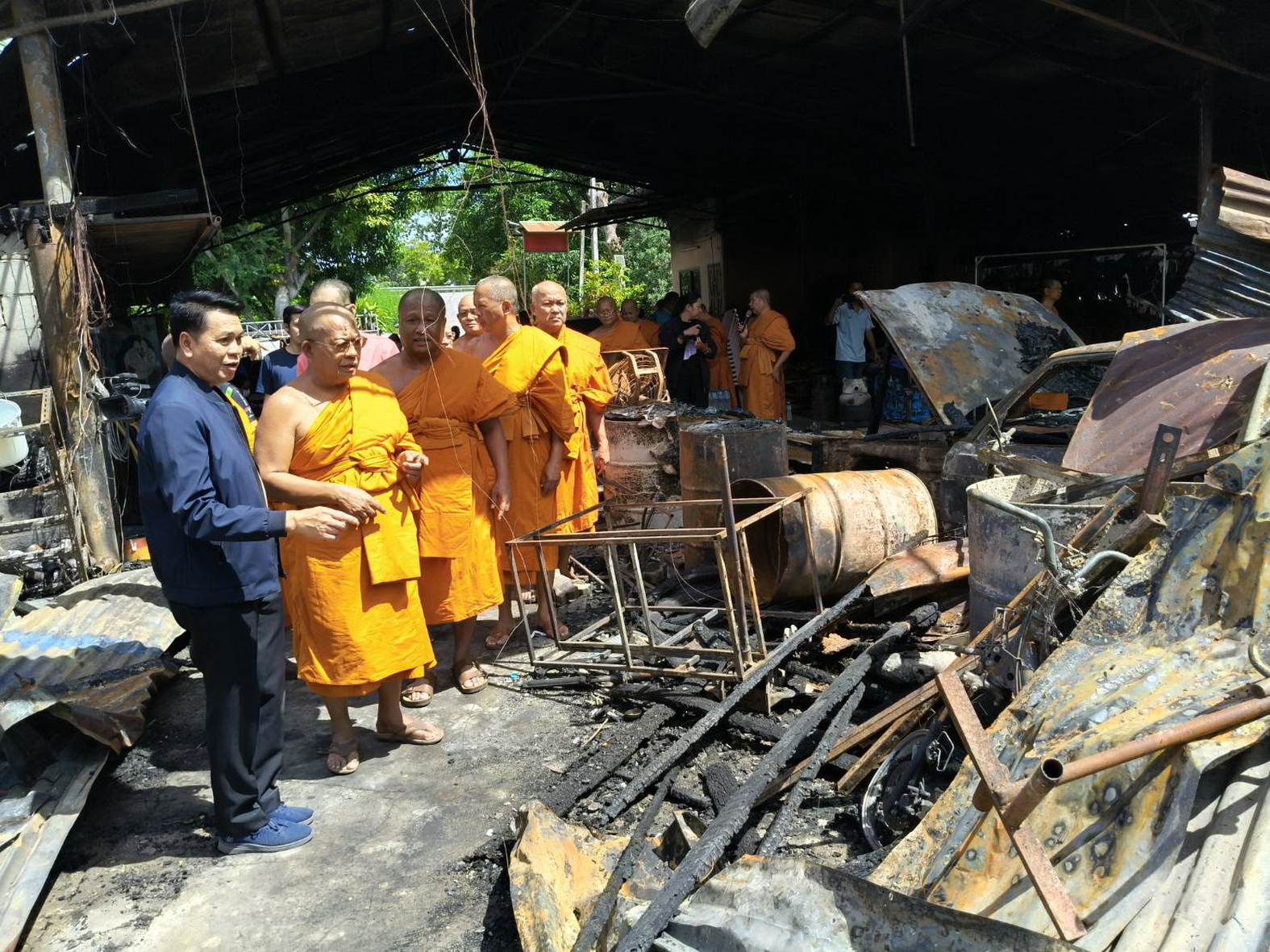 ซึ่งได้มี นางชะลอ บุญซิม ได้ได้รับบาดเจ็บจากไฟลวกที่หน้าผากและแขนขวา พร้อมด้วยครอบครัวรอให้การต้อนรับที่ในอู่ดังกล่าว หลังจากที่ทางคณะได้เดินทางมาถึงเจ้าคณะภาค 3 ได้เป็นตัวแทนของตณะสงฆ์ได้กล่าวให้กำลังใจกับเหตุการณ์ที่เกิดขึ้น ทั้งนี้สืบเนื่องมาจากที่ นางชะลอ ได้สมัครเป็นสมาชิกของโครงการกองทุน "สังฆประชานุเคราะห์ คณะสงฆ์จังหวัดลพบรี" ทางคณะสงฆ์ได้เดินทางนำเครื่องอุปโภค บริโภค และเงินสดจำนวน 1 แสนบาทมาให้การช่วยเหลือในเบื้องต้นตามที่โครงการกำหนด นอกจากนี้ทางส่วนราชการ ทางกาชาดจังหวัด ทางมูลนิธิก็จะเข้ามาให้การช่วยเหลืออีก