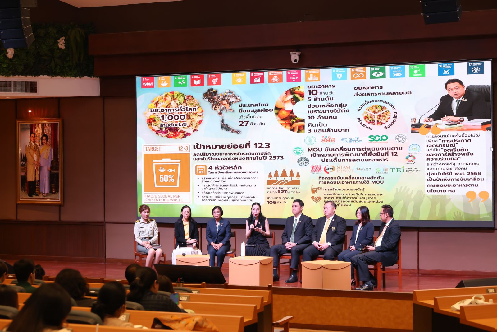 วันนี้ (20 ตุลาคม 2568) เวลา 09.30 น. นายสุชาติ ชมกลิ่น รองนายกรัฐมนตรีและรัฐมนตรีว่าการกระทรวงทรัพยากรธรรมชาติและสิ่งแวดล้อม เป็นประธานในพิธีเปิดและมอบนโยบายการจัดการขยะอาหารในการสัมมนาโครงการ “MNRE Zero Food Waste” เพื่อส่งเสริมให้หน่วยงานภายใต้สังกัดกระทรวงทรัพยากรธรรมชาติและสิ่งแวดล้อมทั้ง 15 หน่วยงาน นำโดยกรมควบคุมมลพิษ และหน่วยราชการบริเวณโดยรอบพื้นที่ซอยอารีย์สัมพันธ์ ได้แก่ หน่วยงานในสังกัดกระทรวงการคลัง และกรมประชาสัมพันธ์ มีการจัดการขยะอาหารในหน่วยงานอย่างเหมาะสมตามนโยบาย Zero Food Waste โดยได้รับความร่วมมือจากสมาคมซาเล้งและร้านรับซื้อของเก่า และมูลนิธิการจัดการทรัพยากรอย่างยั่งยืน (มูลนิธิ 3R) มาร่วมแลกเปลี่ยนแนวทางที่เหมาะสม ณ ห้องประชุมศักดิ์สิทธิ์ ตรีเดช ชั้น 2 อาคารกระทรวงทรัพยากรธรรมชาติและสิ่งแวดล้อม โดยมีผู้บริหารหน่วยงานในสังกัดกระทรวงฯ และผู้แทนหน่วยงานที่เกี่ยวข้องเข้าร่วมงานกว่า 450 คน