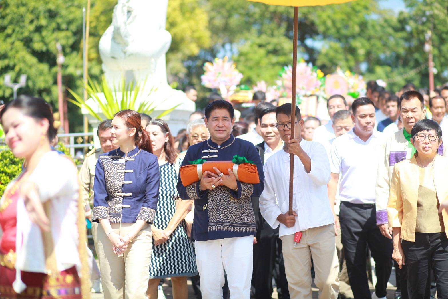 จากนั้น ประธานในพิธีอุ้มผ้ากฐิน กล่าวคำถวายผ้ากฐิน วางบนพานแว่นฟ้า แล้วยกพานประเคนพระสงฆ์ และประเคนเทียนพระปาฏิโมกข์ พระสงฆ์กระทำพิธีอปโลกนกรรม จากนั้นประธานในพิธีถวายเครื่องบริวารกฐิน และผู้เข้าร่วมพิธีถวายเครื่องไทยธรรมแด่พระสงฆ์จำนวน 9 รูป