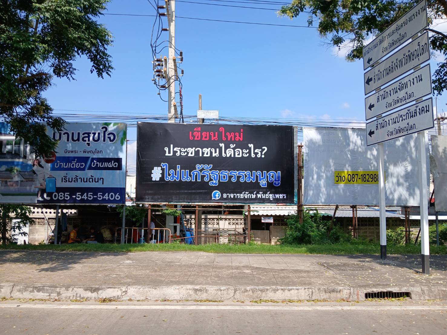 ผู้สื่อข่าวรายงานว่า ในเขตเทศบาลนครพิษณุโลก และพื้นที่โดยรอบเมืองสองแคว ปรากฏ ป้ายขนาดใหญ่จำนวนมาก ตั้งอยู่ตามจุดสำคัญ เช่น ถนนเอกาทศรถ ถนนบรมไตรโลกนาถ และบริเวณแยกบ้านคลอง โดยบนป้ายมีข้อความว่า “เขียนใหม่ ประชาชนได้อะไร? #ไม่แก้รัฐธรรมนูญ” พร้อมทั้งมีชื่อ “อาจารย์จักษ์ พันธ์ชูเพชร” ปรากฏอยู่ด้านล่างของป้ายอย่างชัดเจน