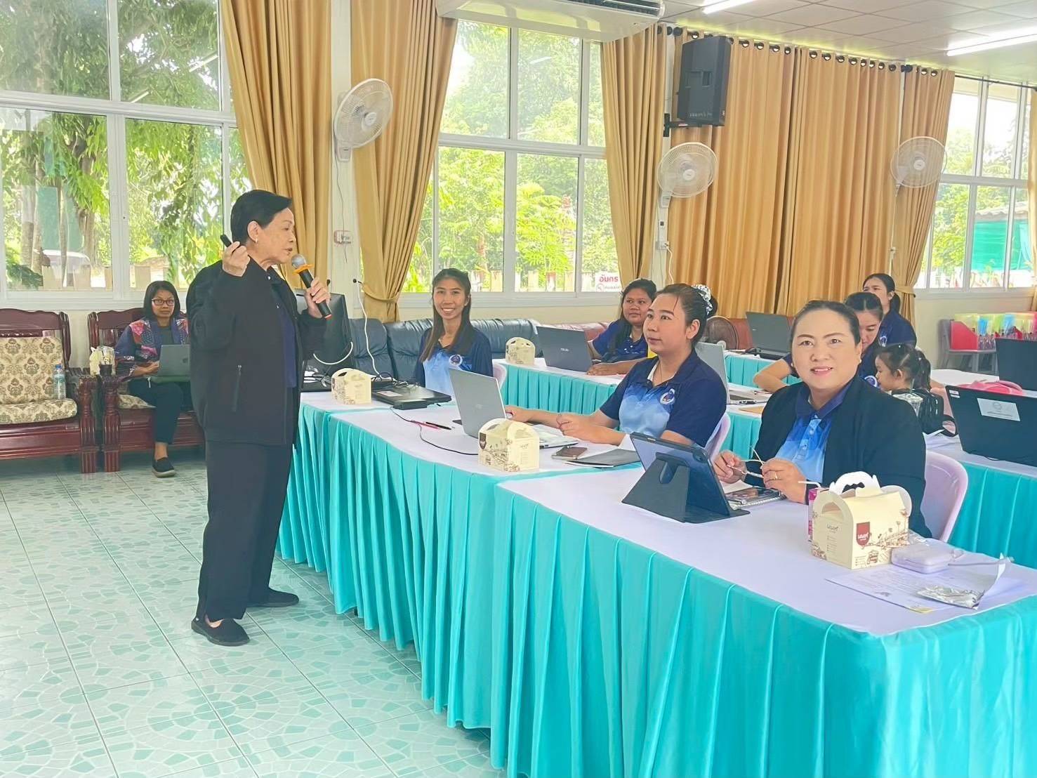 คณาจารย์จากวิทยาลัยครุศาสตร์ มหาวิทยาลัยธุรกิจบัณฑิตย์ ได้จัดอบรมเชิงปฏิบัติการให้กับคณะครูในโรงเรียนเป้าหมาย โดยใช้เวลาระหว่าง 2–3 วันต่อโครงการ เนื้อหาครอบคลุม 2 ส่วนสำคัญ ได้แก่ 1. การสร้างสื่อโดยใชเทคโนโลยีประกอบการสอนแบบ “ทูอินวัน” (AI + สื่อทำมือ) มุ่งส่งเสริมให้ครูสามารถผลิตสื่อการเรียนรู้ทั้งในรูปแบบดิจิทัลด้วย AI และ “สื่อทำมือ” ที่เน้นการลงมือสัมผัสสำหรับเด็กระดับอนุบาล–ประถม ซึ่งช่วยกระตุ้นการเรียนรู้ผ่านประสาทสัมผัส สร้างปฏิสัมพันธ์ และเสริมทักษะการคิดอย่างสร้างสรรค์ ซึ่งสื่อทำมือมีความสำคัญมาก โดยเฉพาะในระดับอนุบาลและประถมศึกษา เพราะเด็กต้องได้จับ ได้สัมผัส จึงจะเกิดการเรียนรู้ที่แท้จริง ส่วน AI ก็เป็นเครื่องมือช่วยเสริมให้ครูสร้างสื่อได้หลากหลาย ทันสมัย และช่วยดึงดูดความสนใจของนักเรียนได้ดี และ 2. เทคนิคการสอนและการออกแบบแผนการเรียนรู้เชิงพหุปัญญา (Multiple Intelligences) ถ่ายทอดแนวคิดจากทฤษฎีของโฮเวิร์ด การ์ดเนอร์ ที่อธิบายถึงสติปัญญา 8 ด้านของมนุษย์ เช่น ด้านภาษา ตรรกะ มิติสัมพันธ์ การเคลื่อนไหวร่างกาย ดนตรี ความเข้าใจตนเองและผู้อื่น รวมถึงความเข้าใจธรรมชาติ เพื่อให้ครูสามารถออกแบบกิจกรรมการเรียนรู้ที่ครอบคลุมการพัฒนาทักษะรอบด้านของผู้เรียน และ รศ.ดร.สิริพัชร์ กล่าว