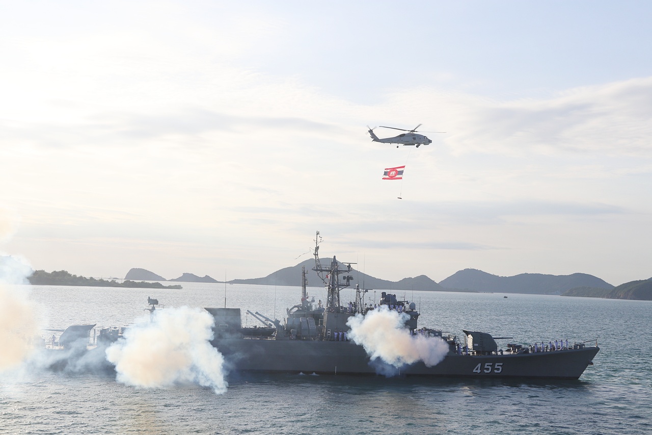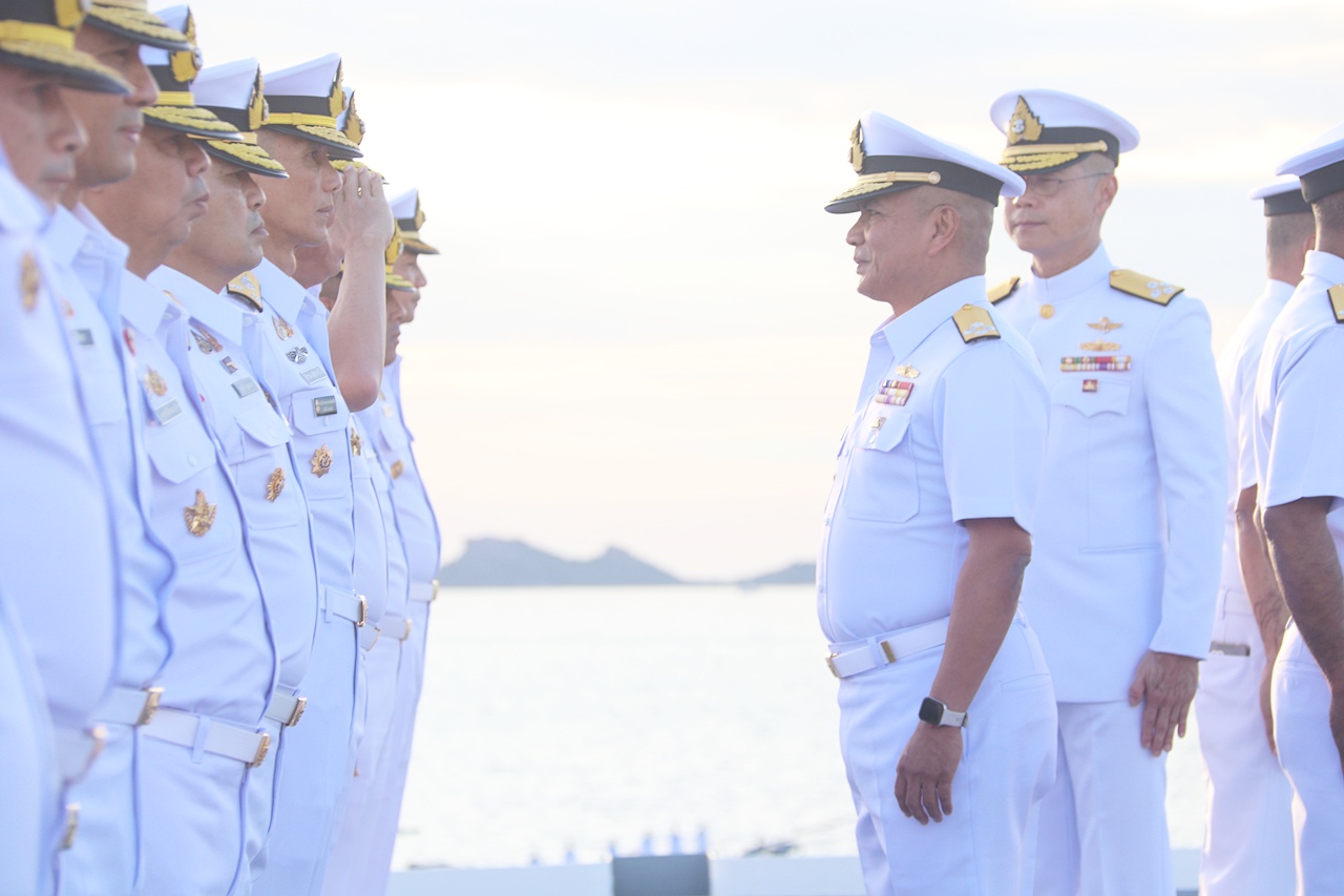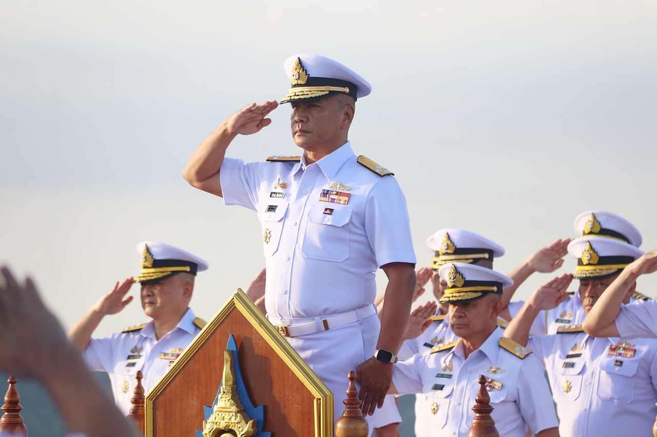 วันนี้ พลเรือเอก ไพโรจน์ เฟื่องจันทร์ ผู้บัญชาการทหารเรือ พร้อมด้วยคณะนายทหารชั้นผู้ใหญ่ของกองทัพเรือ เดินทางไปตรวจเยี่ยมกองเรือยุทธการ บนเรือหลวงจักรีนฤเบศร โดยมี พลเรือเอก กรวิทย์ ฉายะรถี ผู้บัญชาการกองเรือยุทธการ และนายทหารชั้นผู้ใหญ่จากหน่วยต่าง ๆ ของกองทัพเรือในสังกัดของกองเรือยุทธการ ให้การต้อนรับ พร้อมทั้งเรียนเชิญผู้บัญชาการทหารเรือ ขึ้นแท่นเพื่อรับการยิงสลุตคำนับ โดยเรือหลวงเจ้าพระยา จำนวน 19 นัด ณ ท่าเรือจุกเสม็ด การท่าเรือสัตหีบ ฐานทัพเรือสัตหีบ อำเภอสัตหีบ จังหวัดชลบุรี