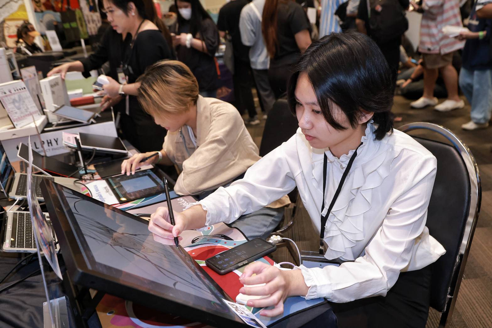 นางสาวศิริกร ตันเจริญ Sale Representative บริษัท Diversitec Distributor (Thailand) ตัวแทนจำหน่ายผลิตภัณฑ์ Wacom เปิดเผยว่า ที่ผ่านมา Wacom เข้าร่วมงาน Comic Avenue มาตั้งแต่ปีแรก และในปีนี้ครบรอบ 10 ปีของการจัดงาน จึงจับมือกับมหาวิทยาลัยธุรกิจบัณฑิตย์ ซึ่งเป็นพันธมิตรทางการศึกษาร่วมกันเปิดพื้นที่ให้นักศึกษาได้ฝึกฝนและสร้างสรรค์ผลงานจริง โดยภายในงาน Wacom ได้จัดเวิร์กช็อปให้น้อง ๆ และผู้ร่วมงานได้ทดลองวาดภาพบนแท็บเล็ตของ Wacom แล้วส่งไฟล์ไปพิมพ์ที่เครื่อง Canon ได้ทันที จากนั้นสามารถนำผลงานไปจัดแสดงหรือจำหน่ายที่บูธของ DPU ซึ่งเป็นการเรียนรู้แบบครบวงจร ตั้งแต่การสร้างสรรค์ผลงาน การผลิต จนถึงการต่อยอดสู่การสร้างรายได้จริง