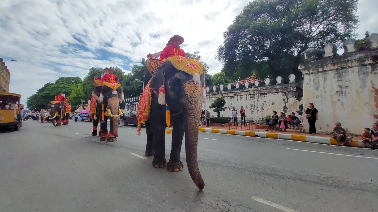 บรรยากาศจัดงานวันแรก ประเพณีลอยกระทงย้อนยุค “มาลานำไทย” อย่างยิ่งใหญ่ มีขบวนนักเรียน นักศึกษา ร่วมกันไว้อาลัย เดินน้อมรำลึก อาลัย แด่แม่หลวงพันปี และขบวนช้างแห่ในยุคสมัยต่าง ๆ ซึ่งได้รับความสนใจจากนักท่องเที่ยวจำนวนมาก