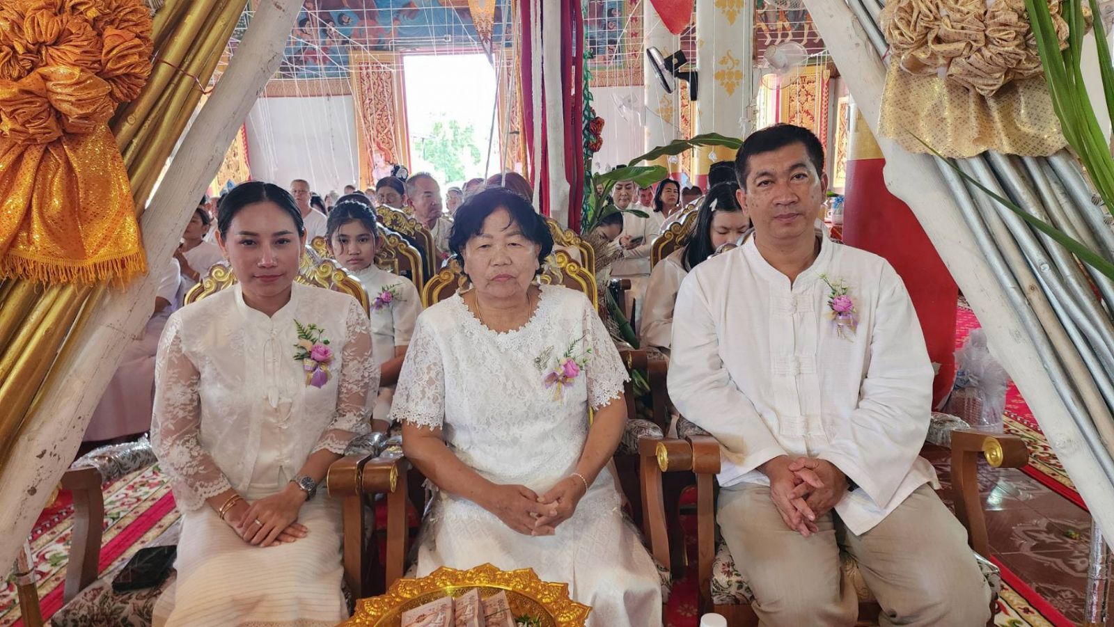 ณ วัดหลวง ตำบลสวด อำเภอบ้านหลวง จังหวัดน่าน ดร.รัฐรุจน์ ปิยะพงศ์ภัทร์ ที่ปรึกษาประธานคณะกรรมาธิการคุ้มครองผู้บริโภค, คุณแม่หลั่น หล่อวงศ์, นายกันตภณ สุขุมมาริน พร้อมด้วย