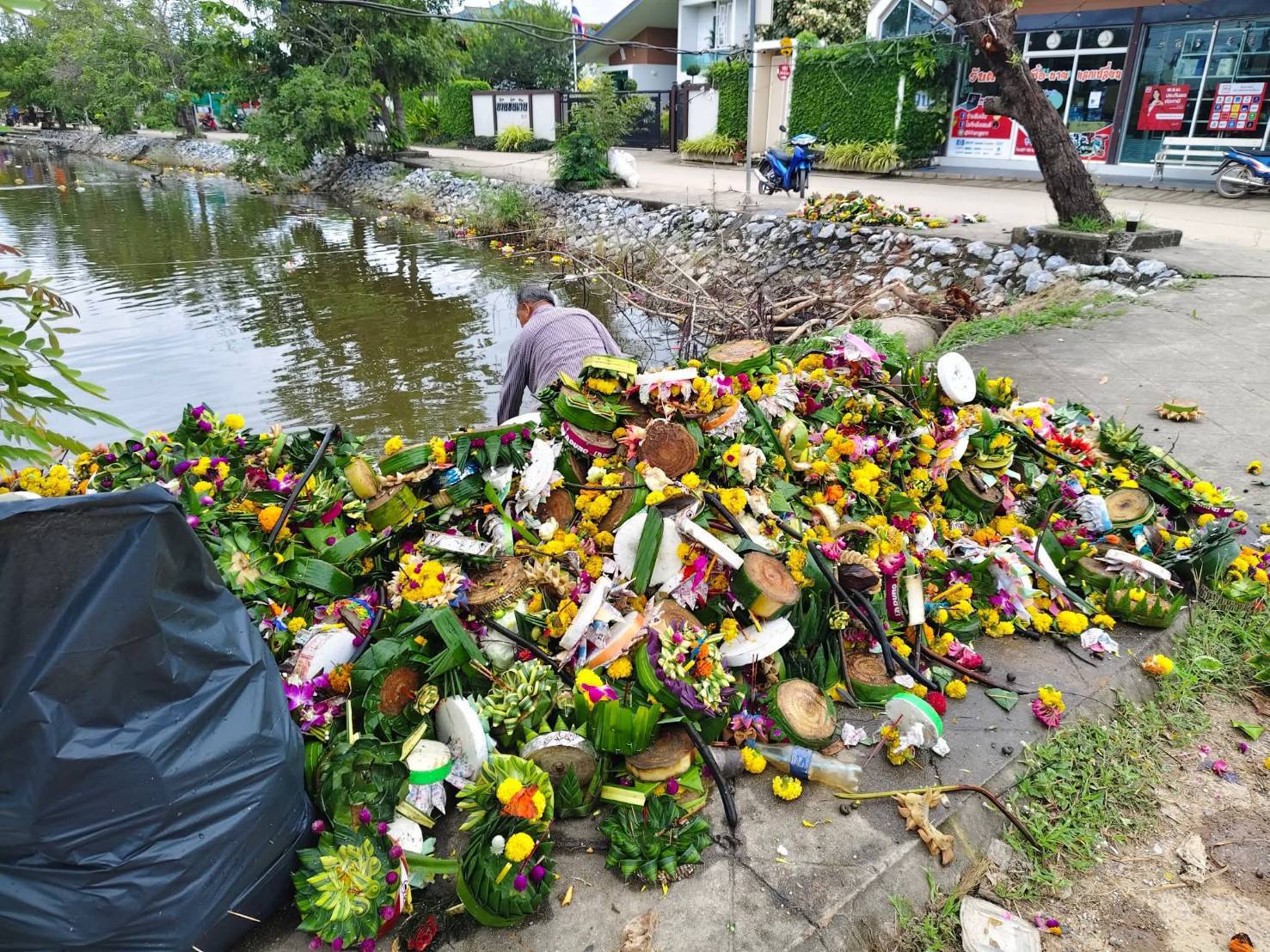 ส่วนกระทงที่เก็บได้ยังพบการใช้แผ่นโฟม หยวกกล้วย ขนมปัง เป็นต้น ซึ่งขยะจากกระทงกว่า 1,000 ใบ ทาง อบต.ตำบลบ้านกร่าง นำไปกำจัดอย่างถูกสุขลักษณะต่อไป