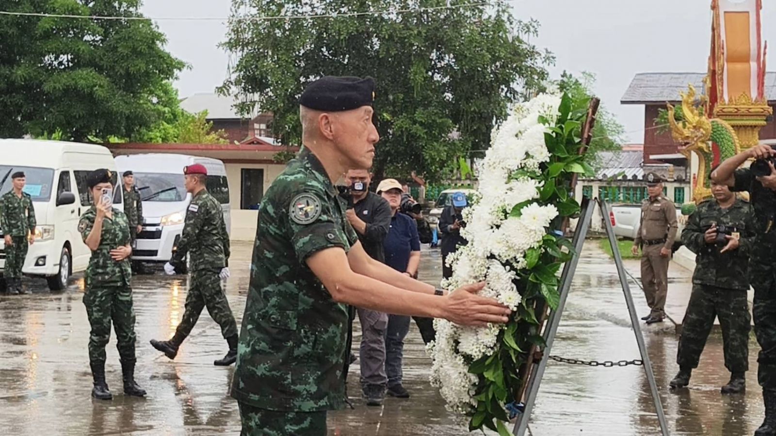 เมื่อเวลา 10.30 นวันที่ 7 พฤศจิกายน 2568 พล.อ.อมฤต บุญสุยา ผช.ผบ.ทบ.พร้อมด้วยคณะได้เดินทางโดยเฮลิคอปเตอร์ของกองทัพบกไปลงยังสนามกีฬาโรงเรียนจตุรพักตรพิมานรัชดาภิเษก อ.จตุรพักตรพิมาน จ.ร้อยเอ็ด จากนั้นนั่งรถยนต์ต่อไปยังที่บ้านเลขที่ 123 หมู่ 4 บ้านอ้น ต.หัวช้าง อ.จตุรพักตรพิมาน จ.ร้อยเอ็ด เพื่อไปให้กำลังใจครอบครัวของ พ.ต.จิรายุ สิงห์อ้นหรือหมู่เจมส์ ทหารหาญซึ่งเสียชีวิตขณะปฏิบัติหน้าที่ปกป้องอธิปไตยของชาติที่ปราสาทตาควาย จ.สุรินทร์ เมื่อวันที่ 25 ก.ค. 2568 ที่ผ่านมา