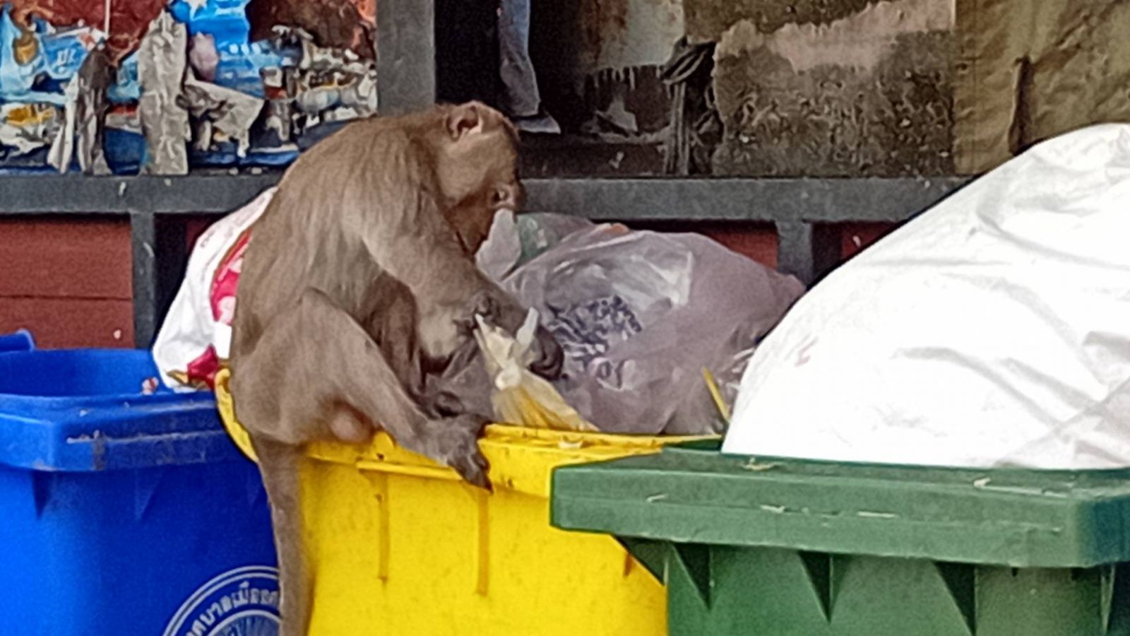 เมื่อเวลา 15.00 น. วันที่ 5 พฤศจิกายน 2568 ที่บริเวณตลาดสดเทศบาลเมืองศรีราชาอำเภอศรีราชาจังหวัดชลบุรีผู้สื่อข่าวลงสำรวจพื้นที่หลังประชาชนร้องเรียนพบฝูงลิงจำนวนมากมาคุยขยะบริเวณตลาดสดศรีราชา