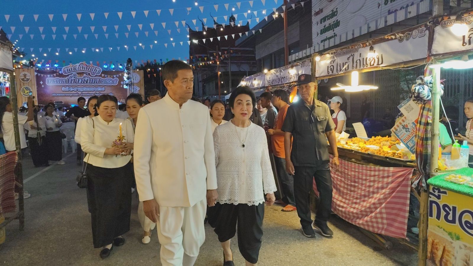 นครราชสีมา/// ช่วงเย็นวันที่ 9 พ.ย.68 นายกร ทัพพะรังสี อดีตรองนายกรัฐมนตรี และภรรยา นายศิวะเสก สินโทรัมย์ นายอำเภอพิมาย นายนิกร โสมกลาง สส.นครราชสีมา เขต8 นายก้องเกียรติ วิชชาพิณ นายกเทศมนตรีตำบลพิมาย พร้อมตัวแทนหน่วยราชการและประชาชนชาวพิมาย และนักท่องเที่ยวชาวไทย ชาวต่างชาติ เนืองแน่น ร่วมอัญเชิญดวงประทีปสักการะสิ่งศักดิ์สิทธิ์ในปราสาทหินพิมายจุดเริ่มประตูชัยแห่ขบวนโคมไฟประดับประดา