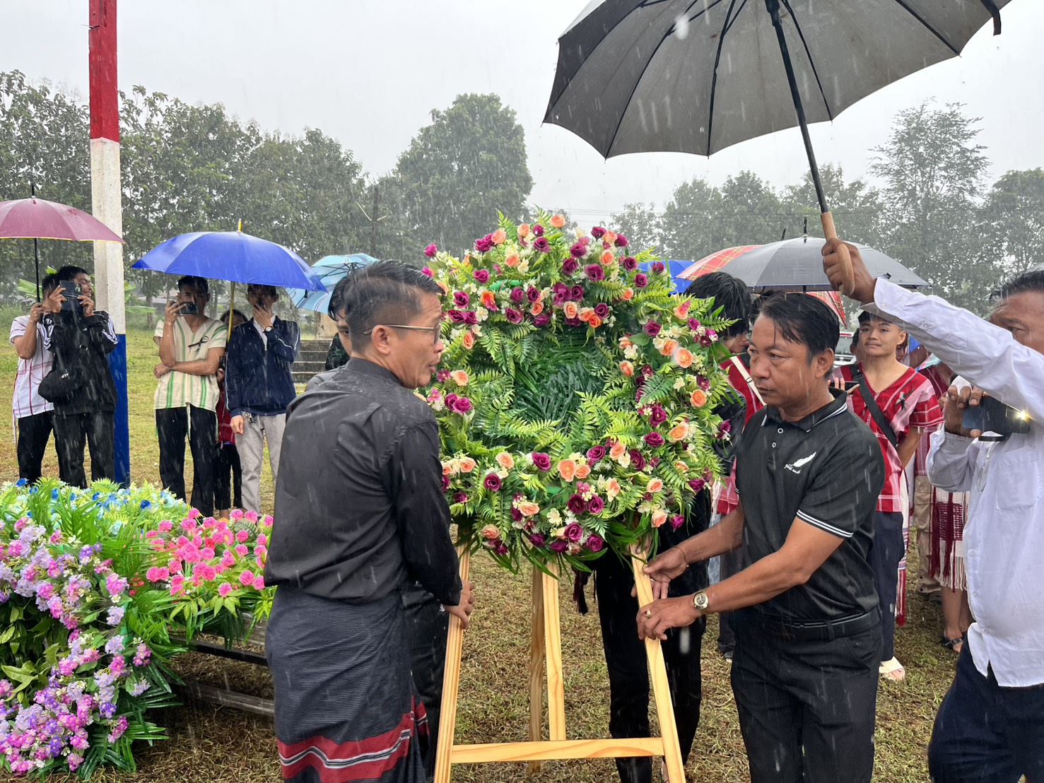 พันเอกเอวัน และตัวแทนส่วนราชการ ผู้นำชุมชน วางพวงมาลาหน้าพระบรมฉายาลักษณ์ เยาวชนขับร้องบทเพลง บรรเลงเพลงสรรเสริญพระบารมี ผู้ร่วมพิธีทำความเคารพพระบรมฉายาลักษณ์ ผู้แทนอ่านสาสน์ไว้อาลัย (ภาษาไทย และภาษากะเหรี่ยง)