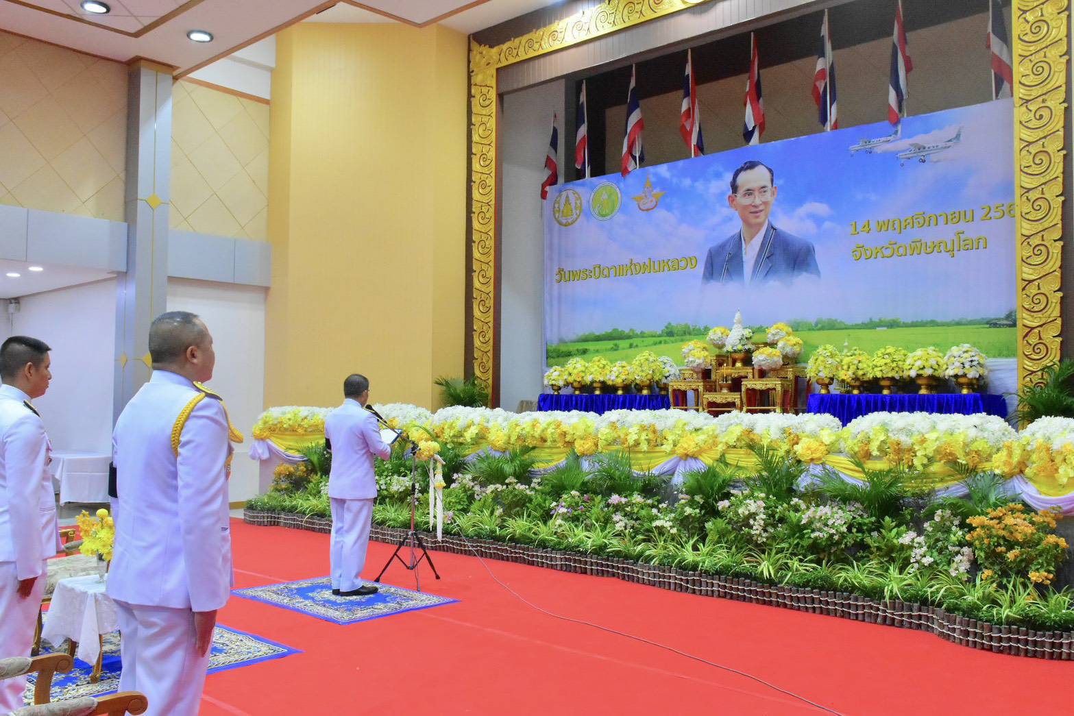 เมื่อเวลา 09.00 น วันที่ 14 พฤศจิกายน 2568 ที่ศาลาประชาคม ศาลากลางจังหวัดพิษณุโลก นายบุญเหลือ บารมี รองผู้ว่าราชการจังหวัดพิษณุโลก รักษาราชการแทนผู้ว่าราชการจังหวัดพิษณุโลก เป็นประธานพิธีวางพานพุ่มดอกไม้สด เนื่องในวันพระบิดาแห่งฝนหลวง ประจำปี 2568 โดยมี หัวหน้าส่วนราชการ ข้าราชการ เจ้าหน้าที่ เข้าร่วมพิธี