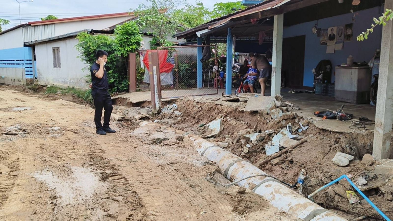 เมื่อวันที่ 14 พ.ย. 68 นายกันวลินทร์ เมืองแก้ว นายอำเภอเมืองศรีสะเกษ มอบหมายให้ นายศรายุธ สีละออง ปลัดอำเภอหัวหน้าฝ่ายความมั่นคง อ.เมืองศรีสะเกษ ร่วมกับ นายพันศักดิ์ ในทอง นายช่างโยธาชำนาญงาน รักษาราชการแทน ผอ.กองช่าง อบต.หนองครก และคณะ ลงพื้นที่ตรวจเยี่ยมผลการดำเนินงานโครงการวางท่อระบายน้ำ คสล.พร้อมบ่อพัก และปรับปรุงถนนคอนกรีตเสริมเหล็ก ที่บริเวณซอยสุขสำราญ หมู่ที่ 1 บ้านหนองครก ต.หนองครก อ.เมือง จ.ศรีสะเกษ หลังมีชาวบ้านร้องทุกข์ผ่านโซเชี่ยลสื่อออนไลน์ แจ้งว่าได้รับความเสียหายและความไม่ปลอดภัยในการที่หน่วยงานมาขุดลอกวางท่อระบายน้ำดังกล่าว จนได้รับผลกระทบกำแพงบ้านพังและทรุดตัวลงทั้งแถบ เกรงว่าบ้านจะทรุด และเกิดความไม่ปลอดภัย