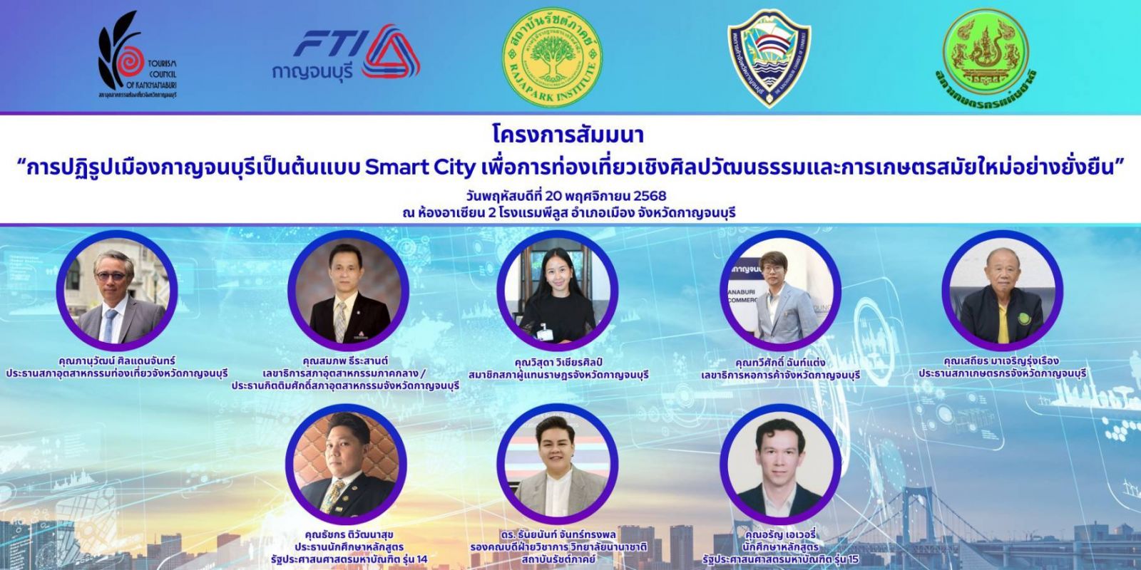 วันนี้ 20 พฤศจิกายน 2568 ผู้สื่อข่าวรายงานว่า สถาบันรัชต์ภาคย์จัดสัมมนา การปฏิรูปเมืองกาญจนบุรีเป็นต้นแบบ Smart City เพื่อการท่องเที่ยวเชิงศิลปวัฒนธรรมและการเกษตรสมัยใหม่อย่างยั่งยืน เป็นเวทีใหญ่ที่ดึงทั้งภาครัฐ เอกชน นักวิชาการ และภาคประชาชนมาร่วมแลกเปลี่ยนอย่างเข้มข้นกว่า 100 คน ที่ห้องอาเซียน 2 โรงแรม Prelude Hotel อำเภอเมือง จังหวัดกาญจนบุรี