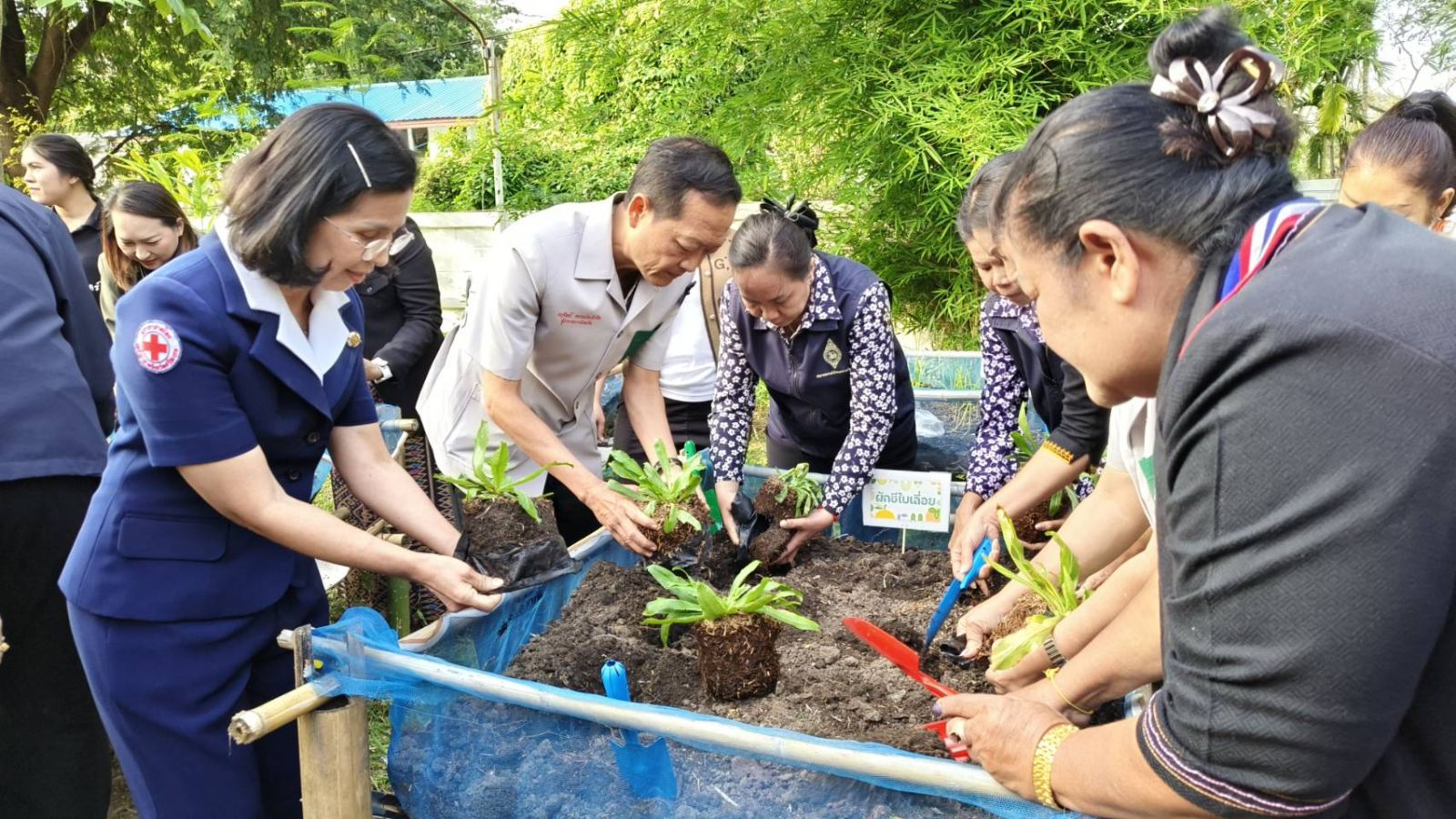 ซึ่งพืชผักสวนครัวที่นำมาปลูกในครั้งนี้ ประกอบด้วย พริก มะเขือเทศ มะเขือเปราะ กะเพรา โหระพา แมงรัก แตงกวา ต้นหอม ผักชีใบเลื่อย ผักบุ้ง ผักชี และบวบ เป็นต้น ทั้งนี้เพื่อเป็นการขับเคลื่อนการน้อมนำแนวพระราชดำริของสมเด็จพระกนิษฐาธิราชเจ้า กรมสมเด็จพระเทพรัตนราชสุดาฯ สยามบรมราชกุมารี โครงการ "บ้านนี้มีรัก ปลูกผักกินเอง" มาต่อยอดและขยายผล สู่ปฏิบัติการปลูกผักสวนครัว เพื่อสร้างความมั่นคงทางอาหารให้กับประชาชนได้มีคุณภาพชีวิตที่ดี