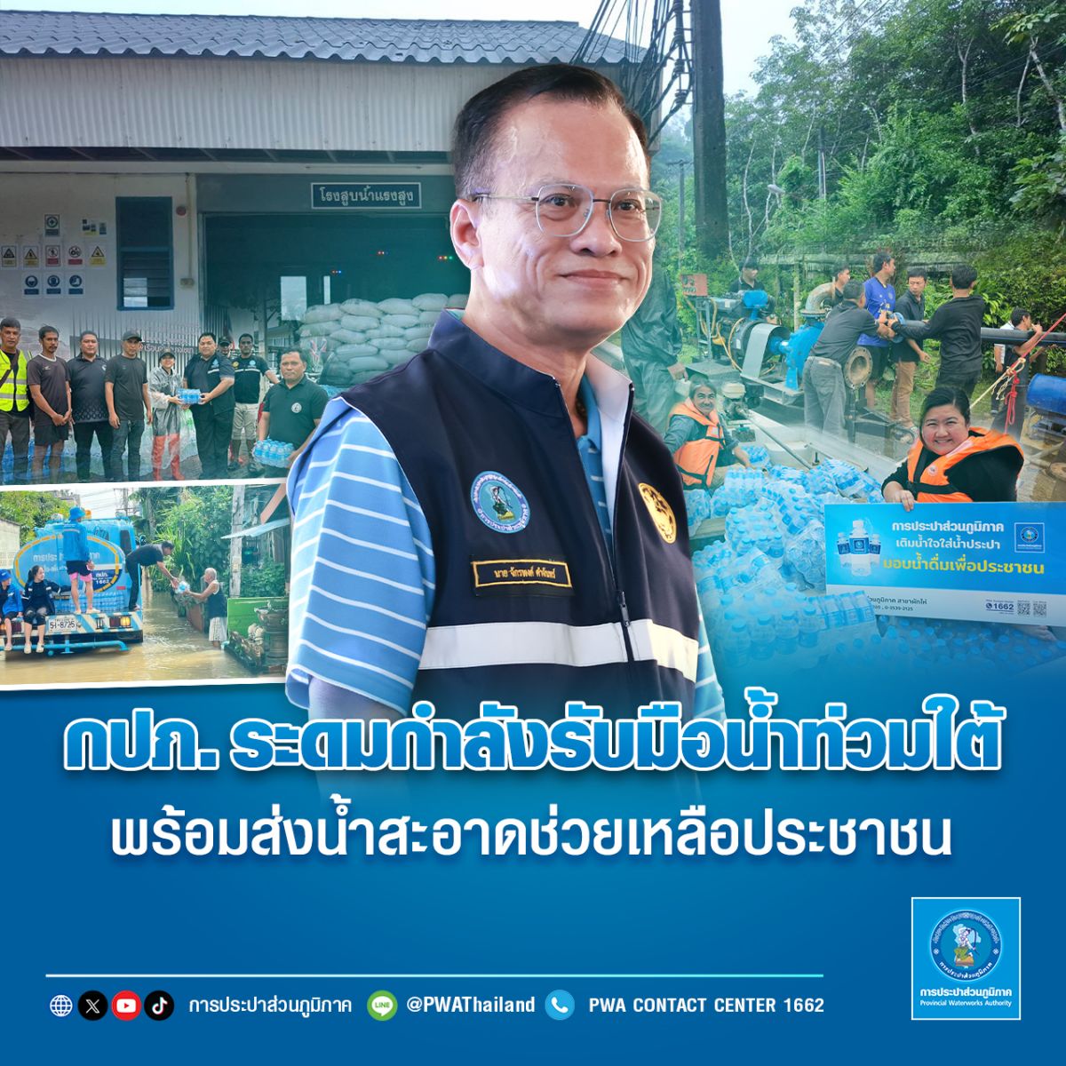 การประปาส่วนภูมิภาค (กปภ.) ติดตามสถานการณ์อุทกภัยในพื้นที่ภาคใต้อย่างใกล้ชิดและเฝ้าระวัง
