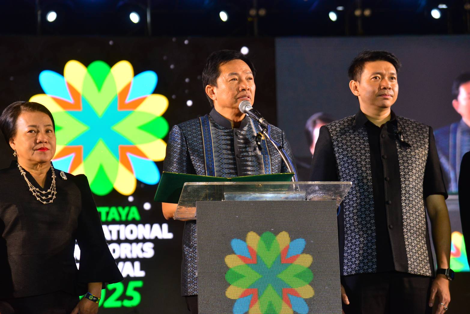 วันนี้ (28 พฤศจิกายน 2568) ที่บริเวณชายหาดพัทยากลาง อำเภอบางละมุง จังหวัดชลบุรี นายนริศ นิรามัยวงศ์ ผู้ว่าราชการจังหวัดชลบุรี พร้อมด้วยนายปรเมศวร์ งามพิเชษฐ์ นายกเมืองพัทยา และนายวิทยา คุณปลื้ม นายกองค์การบริหารส่วนจังหวัดชลบุรี ร่วมเป็นประธานเปิดงาน “เทศกาลพลุนานาชาติเมืองพัทยา 2568” (Pattaya International Fireworks Festival 2025) ภายใต้ธีม “แสงแห่งความจงรักภักดี สถิตในใจนิรันดร์” (The Light of Eternal Loyalty) พร้อมด้วยตัวแทนจากภาครัฐ เอกชน
