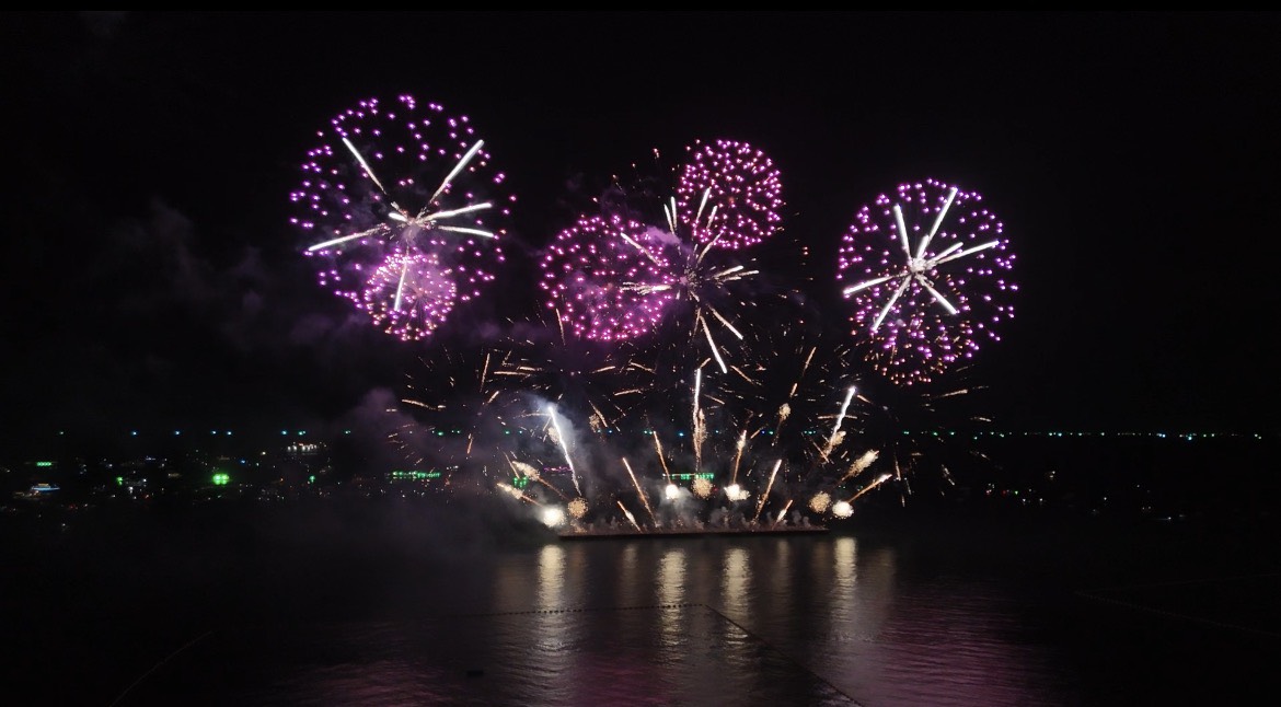 ไฮไลต์สำคัญของค่ำคืน คือการแสดงพลุชุดพิเศษ ไทย–มาเลเซีย ในชื่อ “น้อมจงรักภักดี สดุดีสมเด็จแม่ของแผ่นดิน” โดยออกแบบจังหวะพลุ สีสัน และท่วงทำนองดนตรีให้สื่อถึงพระเมตตา ความงดงามของสถาปัตยกรรมไทย และพระราชกรณียกิจด้านมนุษยธรรม ท่ามกลางเสียงปรบมือดังกึกก้อง ละลายรวมเป็นหนึ่งเดียวของประชาชนทั้งชาวไทยและชาวต่างชาติที่จับจองพื้นที่เต็มชายหาดตั้งแต่หัวค่ำ