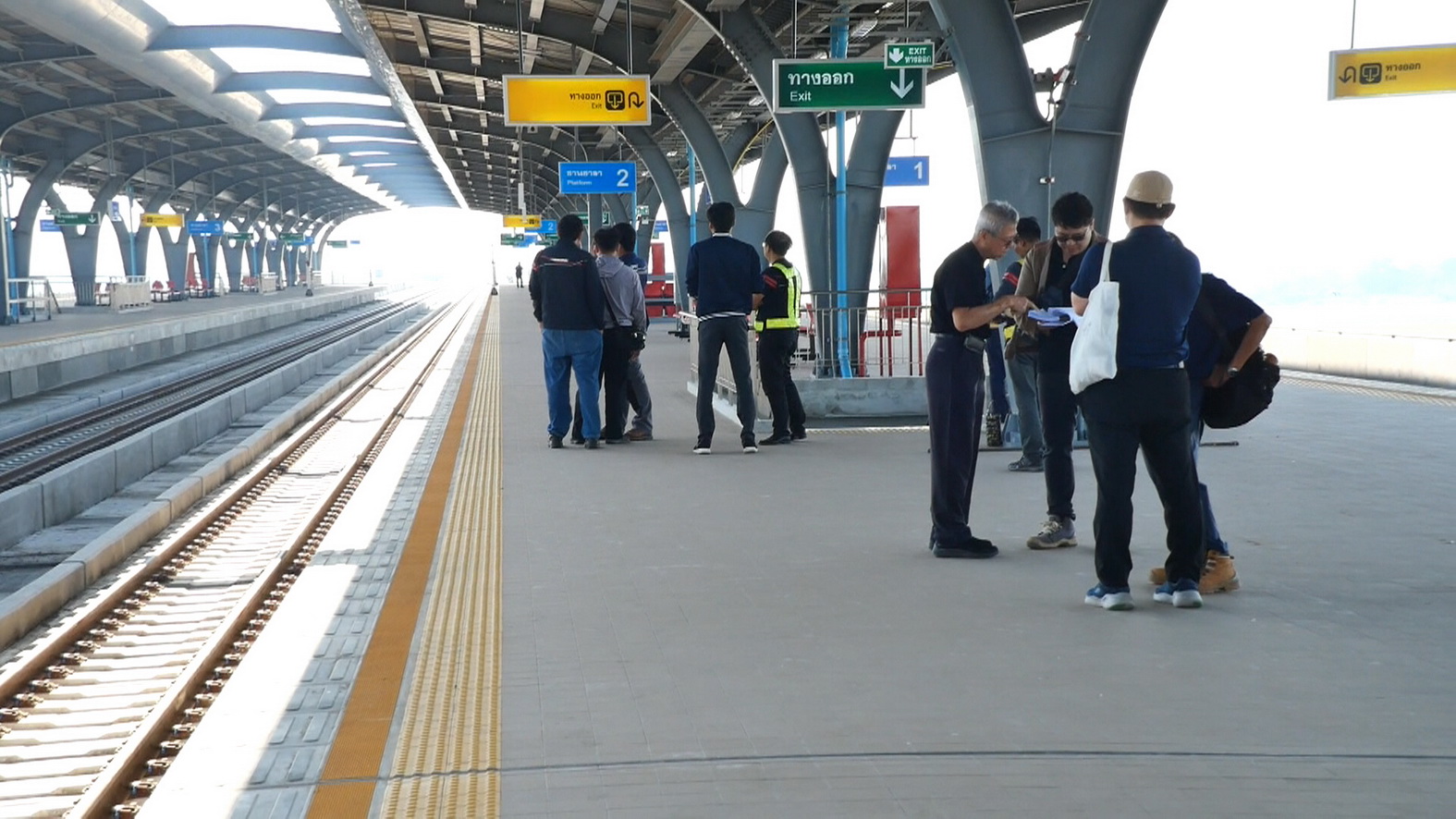 เจ้าหน้าที่จากการรถไฟแห่งประเทศไทยสำรวจเส้นทางรถไฟสายเหนือทางคู่ลอยฟ้าและความพร้อมของ "สถานีลพบุรี 2" ซึ่งจะมีการเดินรถอย่างเป็นทางการในวันที่ 5 ธันวาคมนี้จำนวน 14 ขบวน