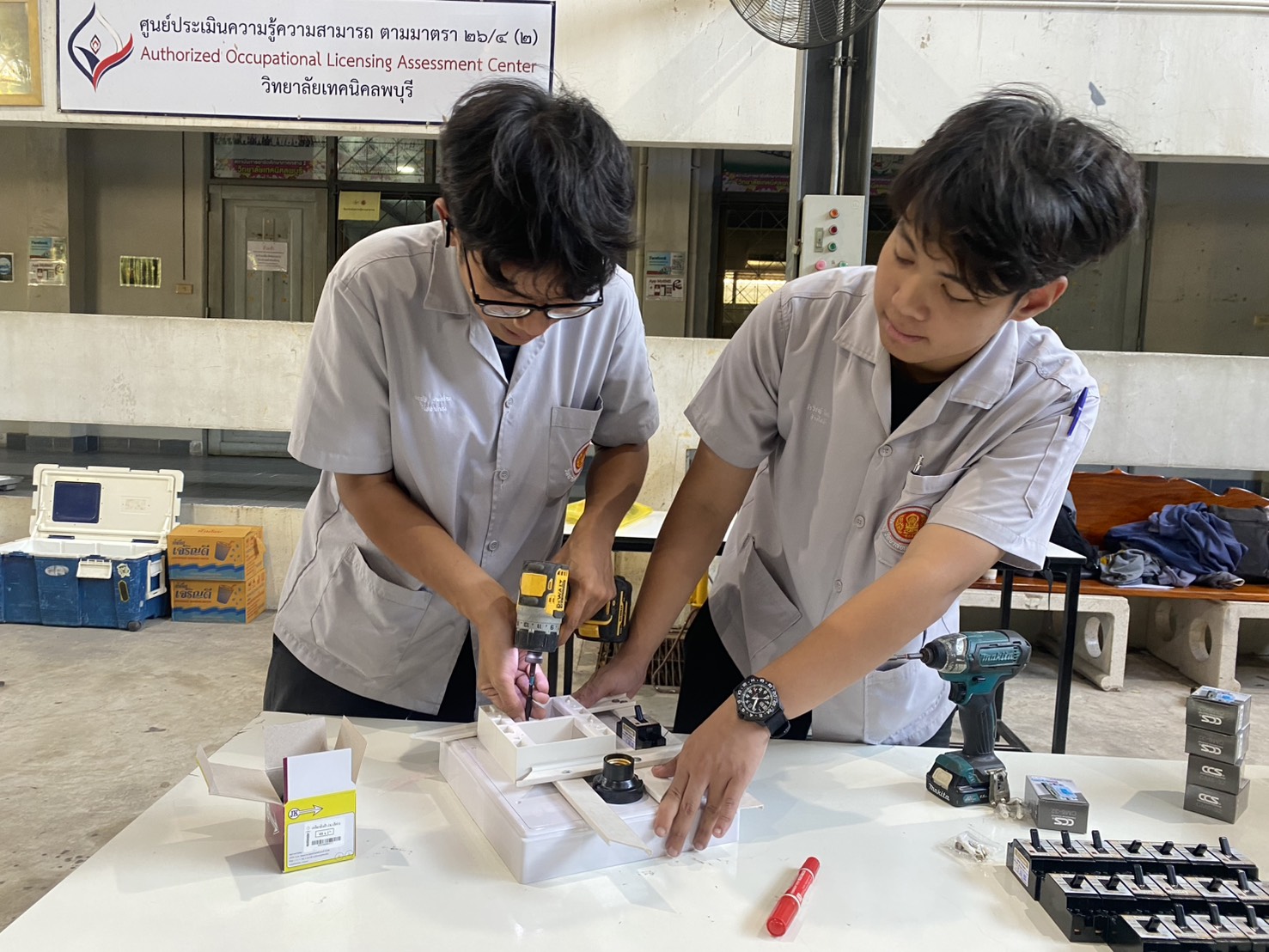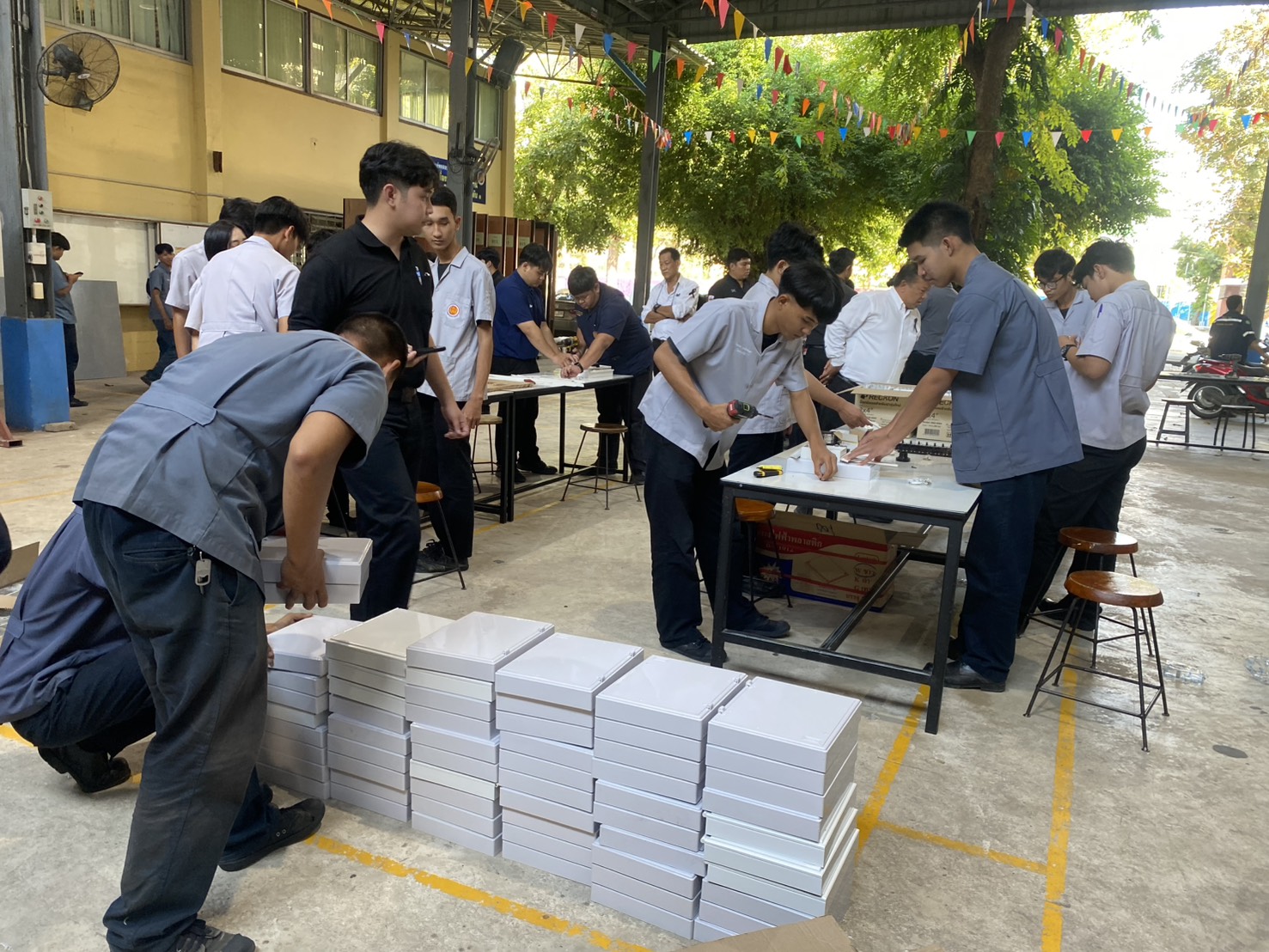 สำหรับ ชุดควบคุมระบบไฟฟ้าชั่วคราว จำนวน 100 ชุดนั้น เนื่องจากเป็นงานเร่งด่วนและมีเวลาจำกัด จะต้องจัดส่งให้ถึงมือผู้ปฏิบัติงานภายโดยเร็วที่สุดไม่เกินวันที่ 4-5 ธ.ค.นี้ ซึ่งปรากฏว่าได้รับความร่วมมือ จาก นายประสงค์ อุบลวัตร ผอ.วิทยาลัยเทคนิคลพบุรี พร้อมด้วยนายอภัย สุดจิตร หัวหน้าแผนกวิชาช่างไฟฟ้ากำลัง คณะอาจารย์และนักศึกษาแผนกช่างไฟฟ้ากว่า 30 คน ได้ร่วมแรงร่วมใจกันประกอบชุดควบคุมระบบไฟฟ้าชั่วคราว จำนวน 100 ชุด จนเป็นที่เรียบร้อย พร้อมกับจะมีการเดินทางนำไปส่งที่อำเภอหาดใหญ่ทันที