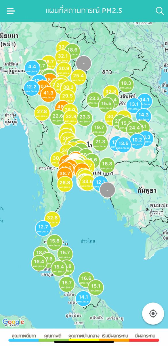 ศูนย์สื่อสารการแก้ไขปัญหามลพิษทางอากาศ (ศกพ.) กรมควบคุมมลพิษ รายงานคุณภาพอากาศประจำวันที่ 4 ธันวาคม 2568 ณ 07:00 น ภาพรวมปริมาณฝุ่นละออง PM2.5 ในประเทศ พบเกินค่ามาตรฐานในหลายพื้นที่ (สีส้ม) โดยเฉพาะอย่างยิ่ง พื้นที่กรุงเทพมหานครและปริมณฑล ในขณะที่พื้นที่ภาคอีสานสถานการณ์กลับเข้ามาอยู่ในเกณฑ์มาตรฐานทุกพื้นที่ โดยภาคเหนือ ตรวจวัดได้ 4.4 – 48.0 ไมโครกรัมต่อลูกบาศก์เมตร (มคก./ลบ.ม.) ภาคตะวันออกเฉียงเหนือ 9.3 – 32.8 มคก./ลบ.ม. ภาคกลางและภาคตะวันตก 24.5 - 49.6 มคก./ลบ.ม. ภาคตะวันออก 16.9 - 55.9 มคก./ลบ.ม. ภาคใต้ 11.8 - 32.5 มคก./ลบ.ม. กรุงเทพมหานครและปริมณฑล 27.3 - 62.1 มคก./ลบ.ม.
