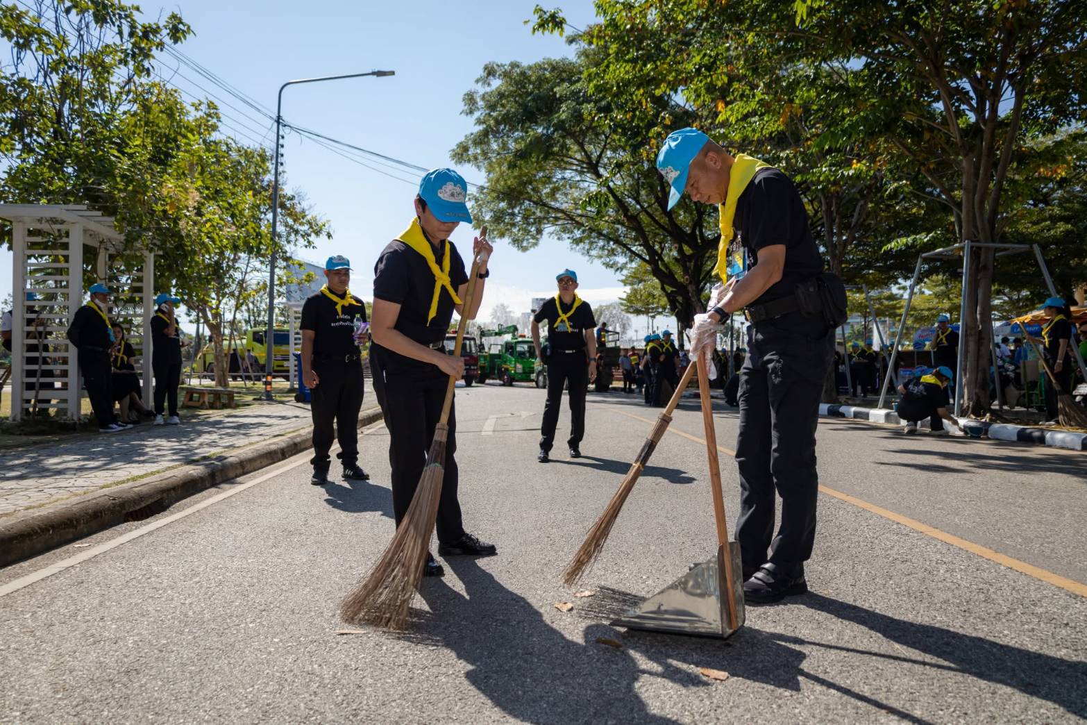 บรรยากาศเต็มไปด้วยความตั้งใจในการน้อมรำลึกในพระมหากรุณาธิคุณในหลวงรัชกาลที่ 9 และพระบาทสมเด็จพระเจ้าอยู่หัว ก่อนร่วมกล่าวคำปฏิญาณ “เราทำความ ดี ด้วยหัวใจ” สะท้อนพลังความร่วมแรงร่วมใจของชาวจังหวัดพิษณุโลก หลังพิธีเปิด ผู้ว่าราชการจังหวัดและผู้ร่วมงานได้ลงพื้นที่ช่วยกันพัฒนาภูมิทัศน์ 3 โซนหลัก ทั้งทาสีขอบทาง ตัดหญ้า เก็บขยะ และจัดระเบียบบริเวณโดยรอบ เพื่อเพิ่มความปลอดภัยและความสวยงามให้พื้นที่สาธารณะ การแต่งกายของผู้ร่วมงานเป็นไปอย่างสุภาพเรียบร้อย พร้อมสวมชุดจิตอาสาตามระเบียบ กิจกรรมครั้งนี้แสดงถึงความรัก ความสามัคคี และความจงรักภักดีของประชาชนที่ร่วมกันทำความดีเพื่อถวายเป็นพระราชกุศล