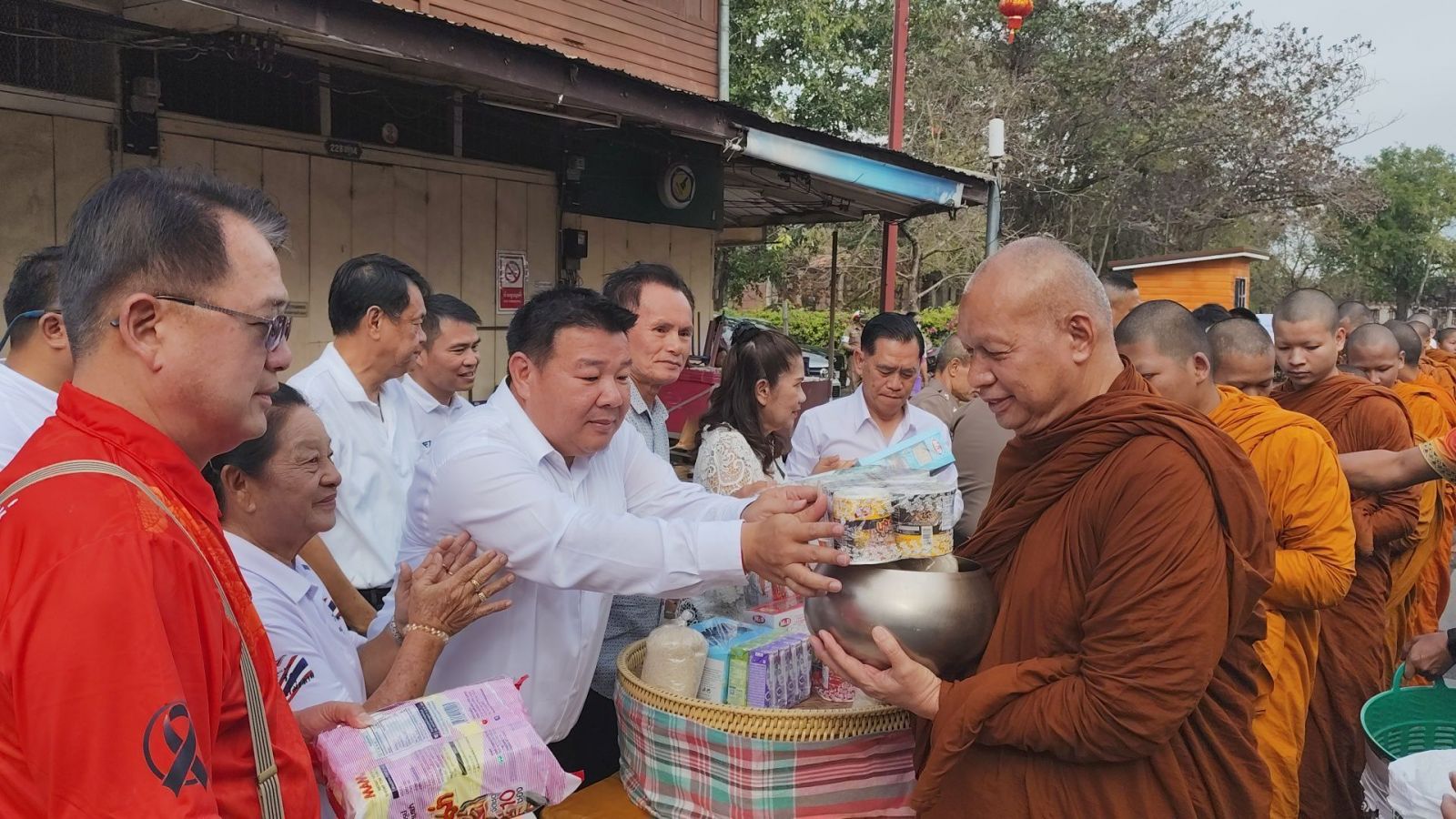 นครราชสีมา/// เมื่อเวลา 08.30 น.วันที่ 12 ธ.ค.68 นายศิวะเสก สินโทรัมย์ นายอำเภอพิมาย จ.นครราชสีมา ร่วมกับ พระครูคุณสารสัมปัน (ธรรมยุต)ที่ปรึกษาเจ้าคณะจังหวัดนครราชสีมา เจ้าอาวาสวัดป่าคุณสัมปันนาราม คณะสงฆ์ธรรมยุตจำนวน 30 รูป นายก้องเกียรติ วิชชาพิณ นายกเทศมนตรีตำบลพิมาย พ.ต.อ.ถึงพร ปานทอง ผกก.สภ.พิมาย ญาติธรรมทุกท่าน ทำบุญตักบาตรข้าวสาร อาหารแห้ง ณ บริเวณถนนจอมสุดาเสด็จ หน้าอุทยานประวัติศาสาตร์พิมาย อ.พิมาย จ.นครราชสีมาเพื่อส่งเป็นกำลังใจแด่แนวหน้าและผู้ประสพภัย ไทยนี้รักสงบแต่ถึงรบไม่ขาด คือคำมั่นสัญญาและกำลังใจจากคนไทยทั้งประเทศ จะอยู่เคียงข้างเสมอ เพื่อช่วยเหลือผู้ประสบภัยจากเหตุการณ์ปะทะแดนไทย-กัมพูชามอบให้ศูนย์อพยพและทหารไทย