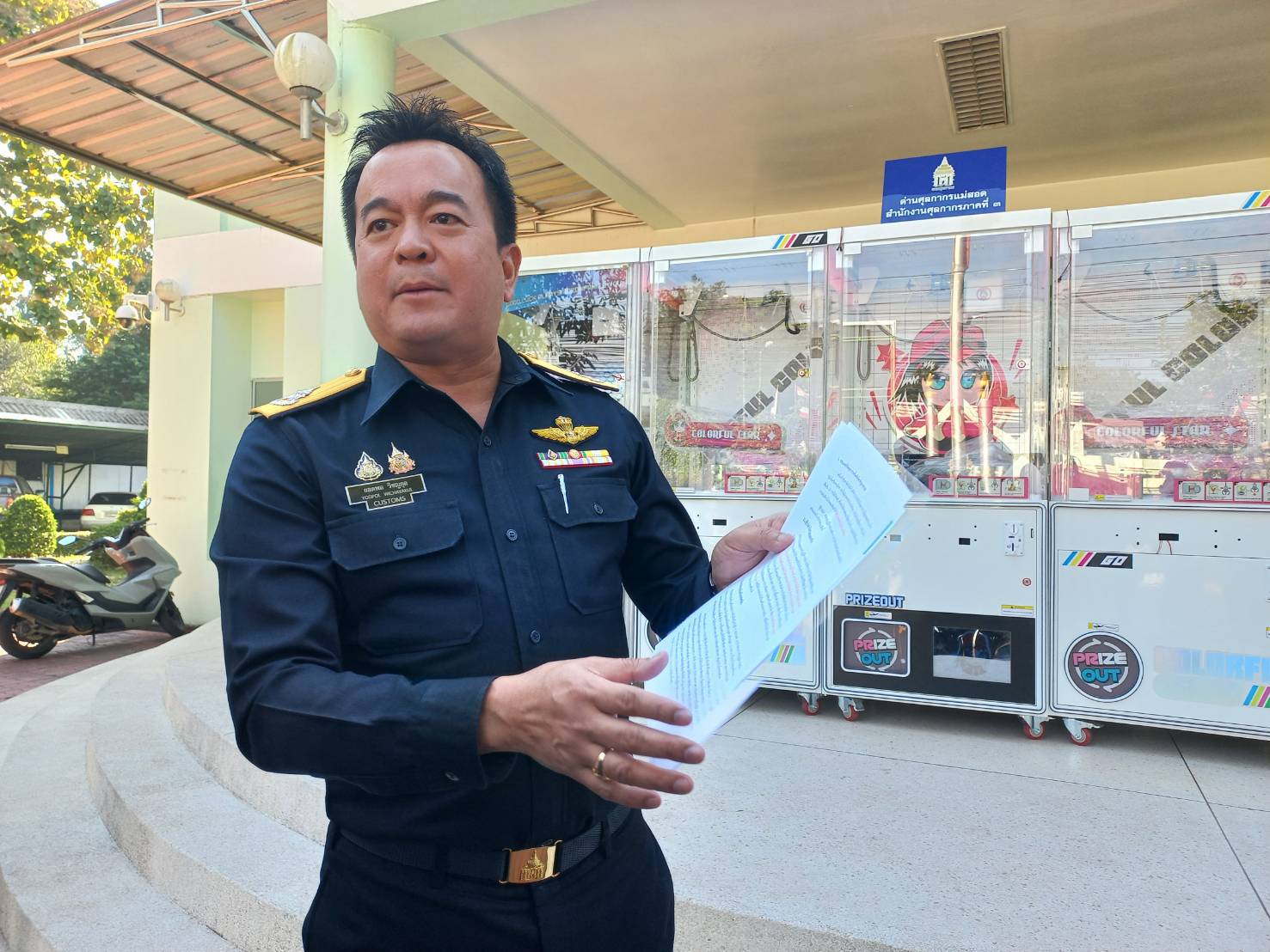 เมื่อเวลา 11.30น. (23 ธันวาคม 2568) นายยอดพล วิชญกุล นายด่านศุลกากรแม่สอด นายแสงอรุณ พงษ์แพทย์ ผู้อำนวยการส่วนควบคุมทางศุลกากร และนายศุภกิจ ท้วมทอง ผู้อำนวยการส่วนบริการศุลกากร แถลงผลการปฎิบัติงาน ด้านการป้องกันและปราบปรามการกระทำความผิดตามกฎหมายศุลกากร หรือกฎหมายอื่นที่เกี่ยวข้องโดยได้ตรวจยึดเครื่องเล่นเกม (ตู้คีบตุ๊กตา) ครบชุดสมบูรณ์ ยี่ห้อ LUCKY STAR จำนวน 23 ตู้ มูลค่าประมาณ 800,000 บาท ซึ่งการดังกล่าวเป็นไปตามนโยบายของกรมศุลกากรในการปกป้องสังคมจากสินค้าผิดกฎหมาย การคุ้มครองผู้บริโภคและสนับสนุนการค้าอย่างเป็นธรรม ซึ่งเป็นความร่วมมือ ของด่านศุลกากรแม่สอด ร่วมกับ ศูนย์เอกซเรย์และเทคโนโลยี ศุลกากร สำนักงานศุลกากรท่าเรือแหลมฉบัง ส่วนควบควบคุมทางศุลกากร สำนักงานศุลกากรภาคที่ 3 และส่วนสืบสวนปราบปราบปราม 3 กองสืบสวนและปราบปราม