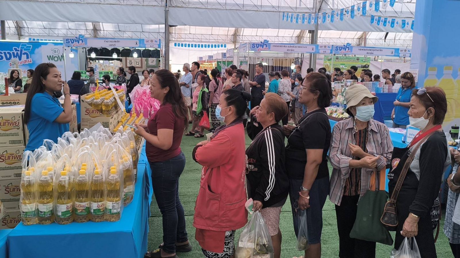 ทั้งนี้ ภายในงานยังมีการจำหน่ายสินค้าไฮไลท์ และสินค้าผลไม้ที่เชื่อมโยงจากกลุ่มเกษตรกร ในราคาพิเศษทุกวัน อาทิ ไข่ไก่เบอร์ M แผงละ 80 บาท น้ำตาลทราย กิโลกรัมละ 20 บาท น้ำมันพืชปาล์ม ขวดละ 38 บาท ข้าวหอมมะลิ (5 กก.) ถุงละ 120 บาท และยังช่วยเหลือผู้ประกอบการในพื้นที่ 7 จังหวัดชายแดนไทย-กัมพูชา สินค้ารวมสินค้าจากผู้ประกอบการชายแดนเป็น “เซตสินค้า” ภายในงานได้อีกด้วย