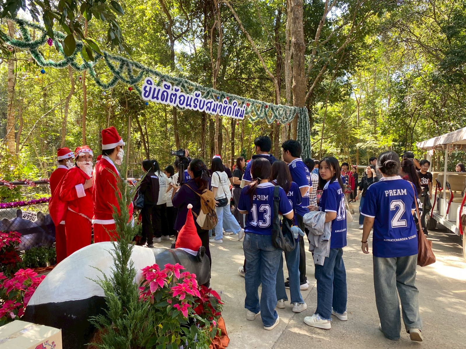 ที่สวนสัตว์อุบลราชธานี นายทนบ ศิริปิยนาค ผู้อำนวยการสวนสัตว์อุบลราชธานี นำทีมคณะผู้บริหาร และเจ้าหน้าที่ พนักงานสวนสัตว์ แต่งตัวเป็นซานต้าครอส แซนตี้ หรรษา มามอบความสุข สดใส เป็นของขวัญวันคริสต์มาสให้กับนักท่องเที่ยว ได้สัมผัสกับความน่ารักของสมเสร็จ หนึ่งในสัตว์ป่าสงวนของไทย พร้อมมอบกระเช้าอาหารสุดพิเศษให้สมเสร็จ 2 ตัว นั้นคือ น้องออปโป้ เพศเมีย อายุ 8 ปี 4 เดือน และ น้องมาวิน เพศผู้ อายุ 11 ปี 8 เดือน ที่มีลักษณะนิสัยน่ารัก สดใส ขี้เล่น สร้างสีสันและความตื่นเต้นให้กับนักท่องเที่ยวโดยเฉพาะเด็กๆ ที่มาเยือน โดย สมเสร็จทั้ง 2 ตัว ได้รับมอบมาจากสวนสัตว์เปิดเขาเขียว จังหวัดชลบุรี เมื่อวันที่ 26 กันยายน 2568 ซึ่งหลังจากเดินทางมาถึงสวนสัตว์อุบลราชธานี ได้มีสัตวแพทย์ตรวจสุขภาพเป็นประจำและผู้เลี้ยงดูแลอย่างใกล้ชิดและให้สมเสร็จทั้ง 2 ตัวได้ปรับตัวเพื่อให้คุ้นชินกับสถานที่ใหม่และทดลองปล่อยเทียบคู่เพื่อให้สามารถอยู่ร่วมกันได้