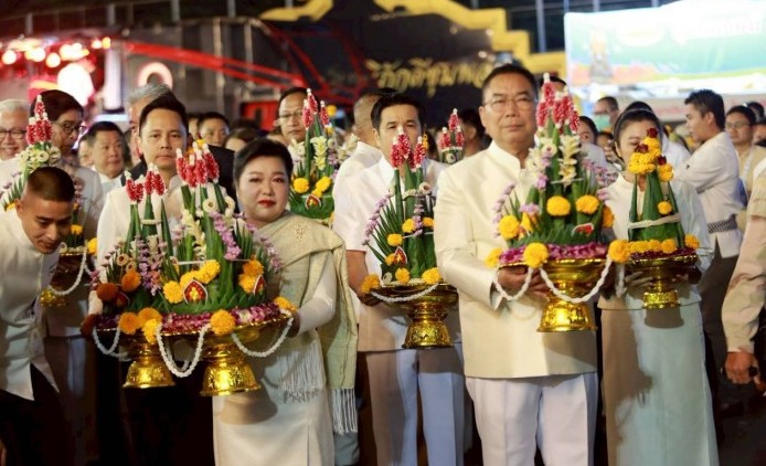 โดยช่วงเช้าทางวัดและชาวบ้านได้จัดทำพิธีบวงสรวงเซ่นไหว้สิงศักดิ์สิทธิ์ นำผลไม้ อาหารคาวหวาน น้ำหวาน 7 สี ในการเซ่นไหว้ พิธีกรรมดังกล่าว เรียกว่า “เผาตาเจ๊ะ /ยายเจ๊ะ ” แปลเป็นภาษาไทย ว่า เผาตากล้วย -ยายกล้วย โดยพิธีการจะจัดคล้ายกับการจัดงานศพเหมือนทุกอย่าง ต่างเพียงแค่นำต้นกล้วยมาใส่ในโลงเท่านั้น