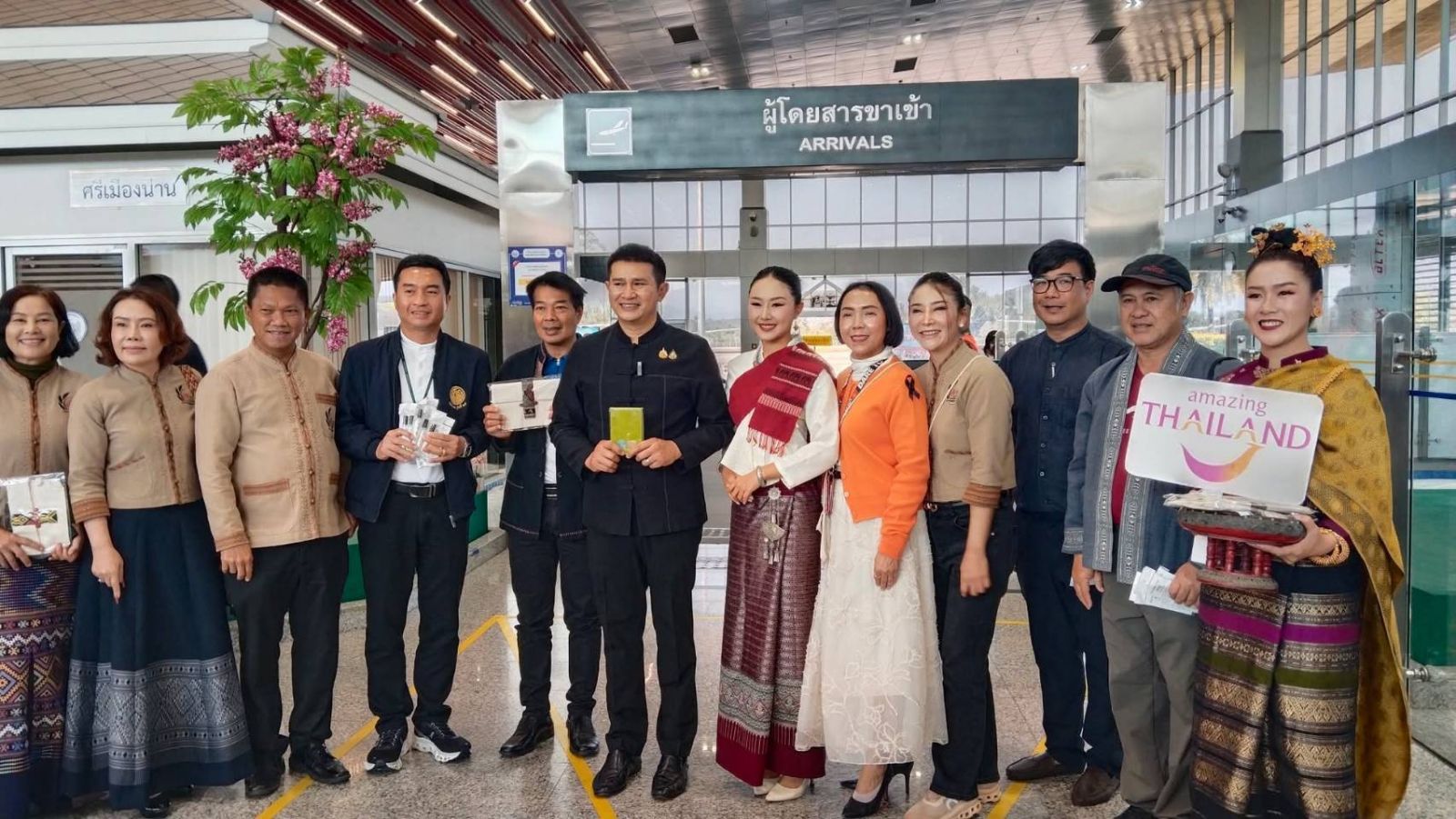 นายชัยนรงค์ วงศ์ใหญ่ ผู้ว่าราชการจังหวัดน่าน พร้อมคณะ ได้ร่วมให้การต้อนรับและมอบของที่ระลึก “ชุดต้อนรับปีใหม่เมืองน่าน” แก่นักท่องเที่ยวที่เดินทางมาถึง โดยเที่ยวบินพาณิชย์เที่ยวแรกของปี ประกอบด้วย สายการบินนกแอร์ จำนวน 143 คน และสายการบินแอร์เอเชีย จำนวน 158 คน รวมผู้โดยสารในช่วงเช้าทั้งสิ้น 301 คน บรรยากาศเป็นไปอย่างอบอุ่นและเป็นกันเอง