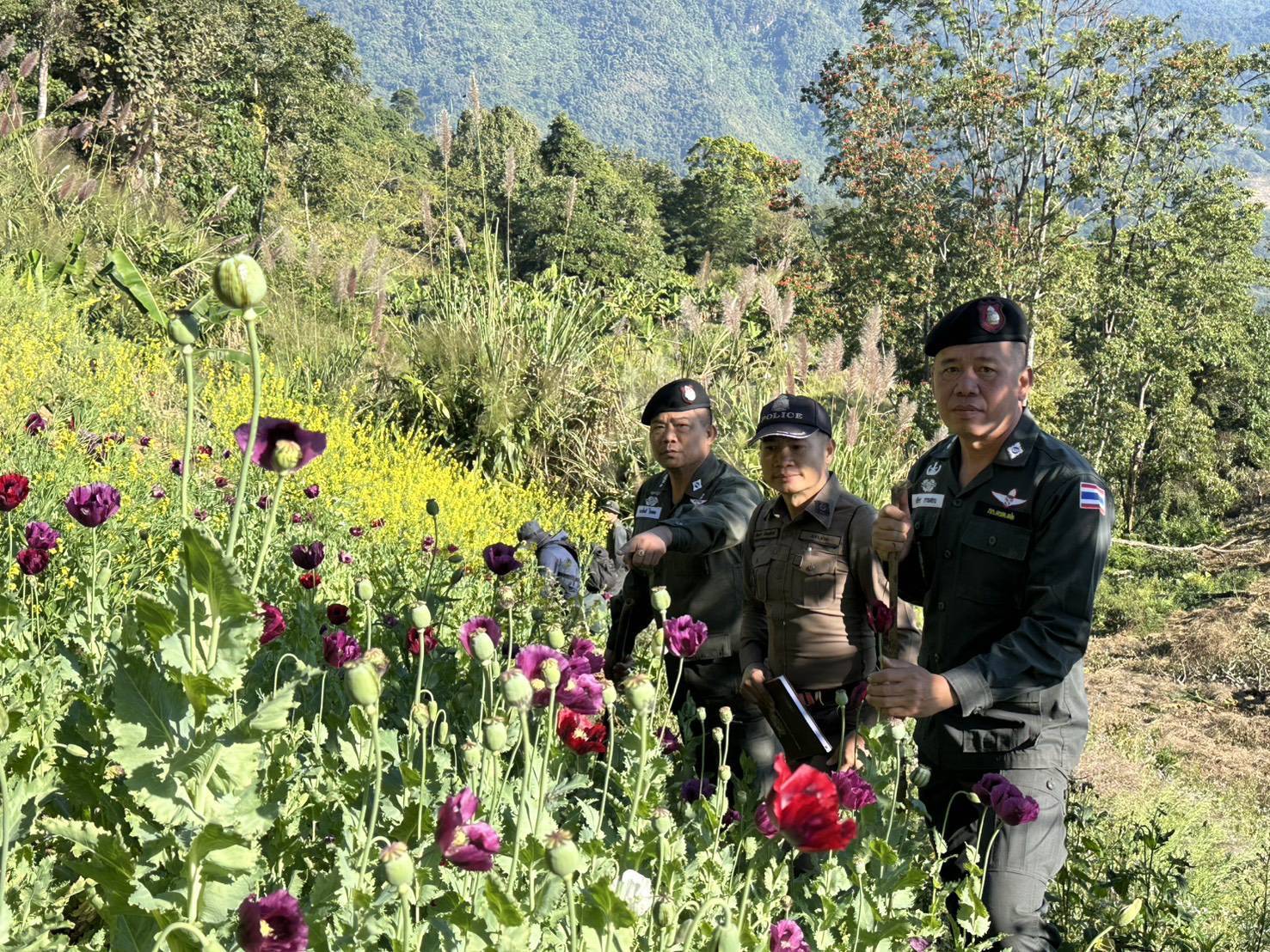 เมื่อวันที่ 7 มกราคม 2569 เวลาต่อเนื่อง 06.00 - 18.00 น. พ.ต.ท.ทรงศักดิ์ ไชยลาภ รองผู้กำกับการตำรวจตระเวนชายแดนที่ 32 ในฐานะหัวหน้ากองร้อยตำรวจตระเวนชายแดนที่ 325 ได้นำกำลังเจ้าหน้าที่ ตชด.325 บูรณาการร่วมกับกองร้อยอาสารักษาดินแดนจังหวัดน่านที่ 1 กองร้อย อส.อำเภอท่าวังผาที่ 7 สภ.ท่าวังผา สภ.ตาลชุม อุทยานแห่งชาตินันทบุรี และหน่วยรักษาป่าไม้ที่ นน.4 (ท่าวังผา) เข้าลาดตระเวนปราบปรามและทำลายแปลงปลูกพืชเสพติด (ฝิ่น) ในพื้นที่บ้านดอยติ้ว อำเภอท่าวังผา จังหวัดน่าน บริเวณดอยขาด