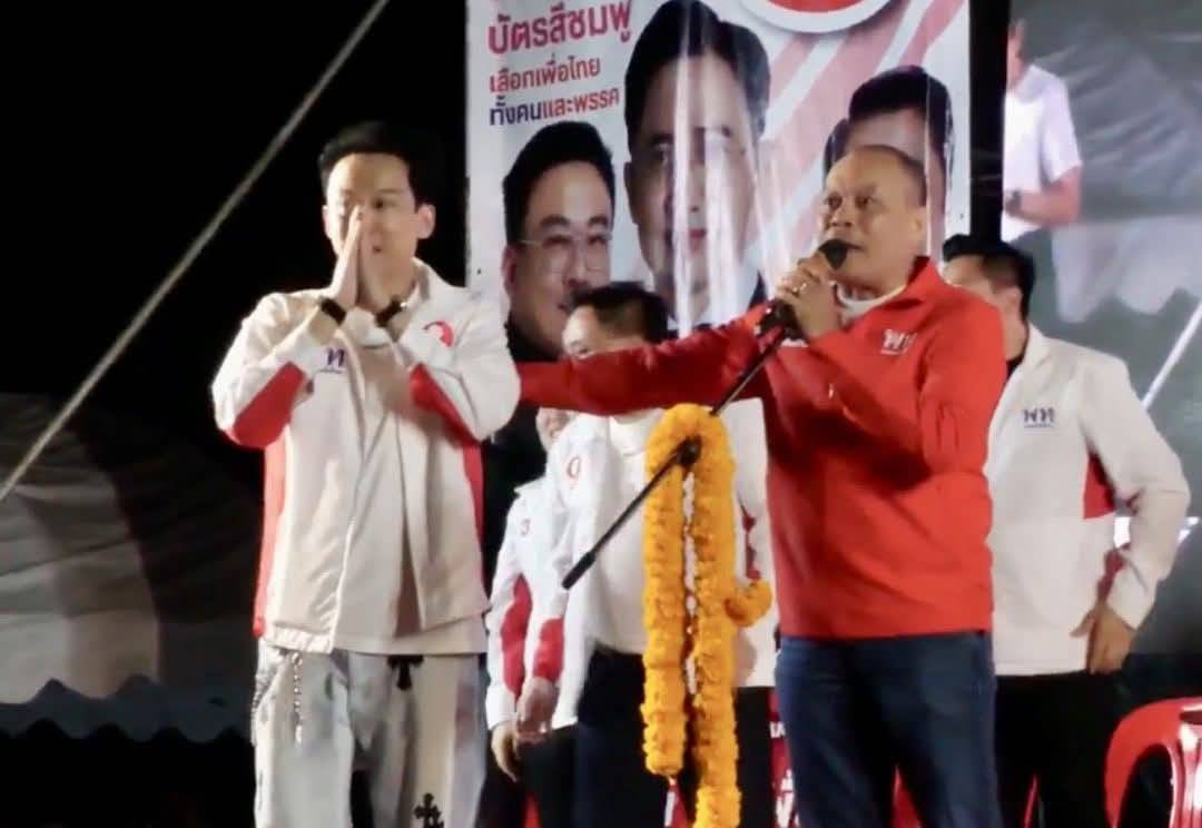 ขึ้นเวทีให้กำลังใจ ด้าน'จาตุรนต์' ตบท้าย ขอชาวบางน้ำเปรี้ยวเลือก'ปลัดโจ๊ะ' เขต2 พา'ยศชนัน'เป็นนายกฯ