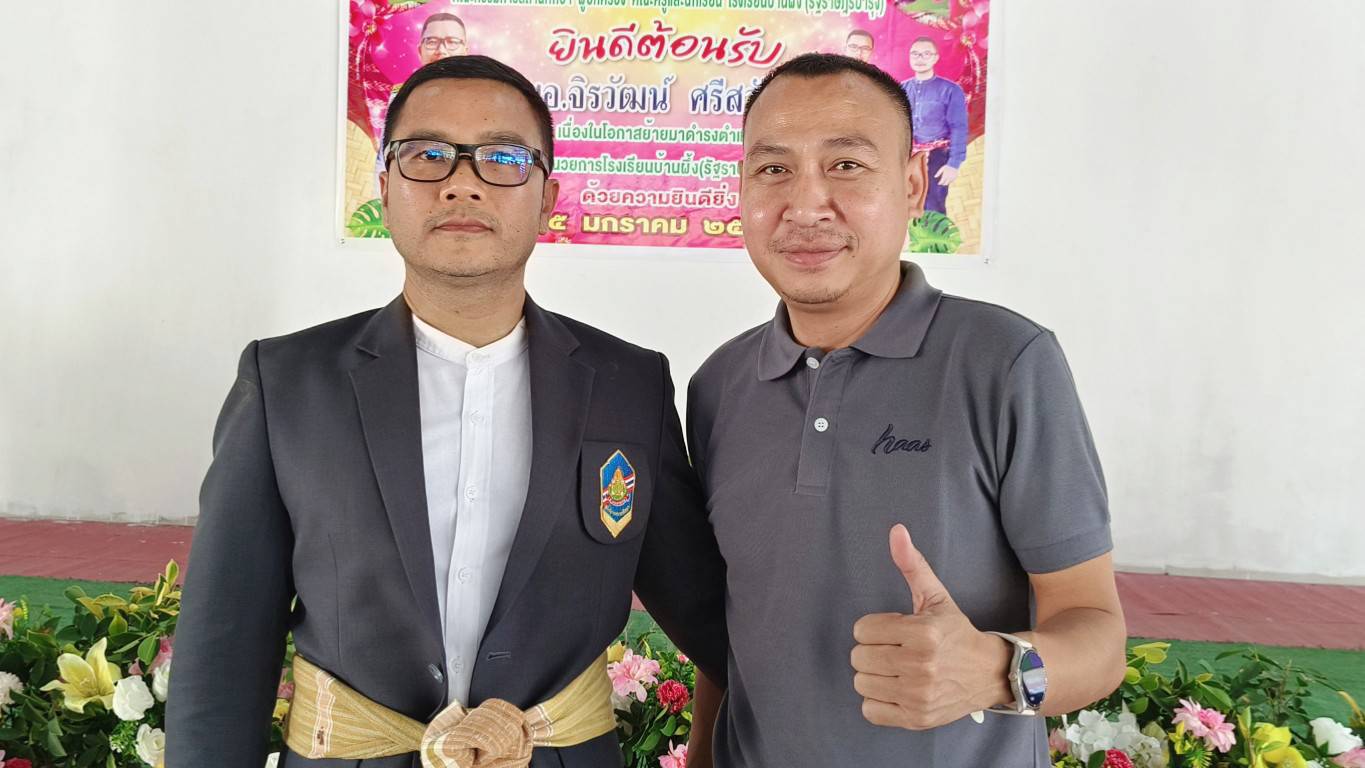 เมื่อวันที่ 15 ม.ค. 2569 ที่โรงเรียนบ้านผึ้ง (รัฐราษฎร์บำรุง) ต.รังแร้ง อ.อุทุมพรพิสัย จ.ศรีสะเกษ คณะกรรมการสถานศึกษา ผู้บริหารสถานศึกษา คณะครู บุคคลากรทางการศึกษา ผู้ปกครอง นักเรียน และชาวบ้านในพื้นที่ แห่ร่วมยินดีต้อนรับ นายจิรวัฒน์ ศรีสวัสดิ์ ในโอกาสย้ายจากตำแหน่ง ผอ.โรงเรียนบ้านสร้างเหล่าโนนแดง สังกัด สำนักงานเขตพื้นที่การศึกษาศรีสะเกษ เขต 1 อ.กันทรารมย์ จ.ศรีสะเกษ มาดำรงตำแหน่ง ผอ.โรงเรียนบ้านผึ้ง (รัฐราษฎร์บำรุง) สังกัด สำนักงานเขตพื้นที่การศึกษาศรีสะเกษ เขต 2 อ.อุทุมพรพิสัย จ.สรีสะเกษ